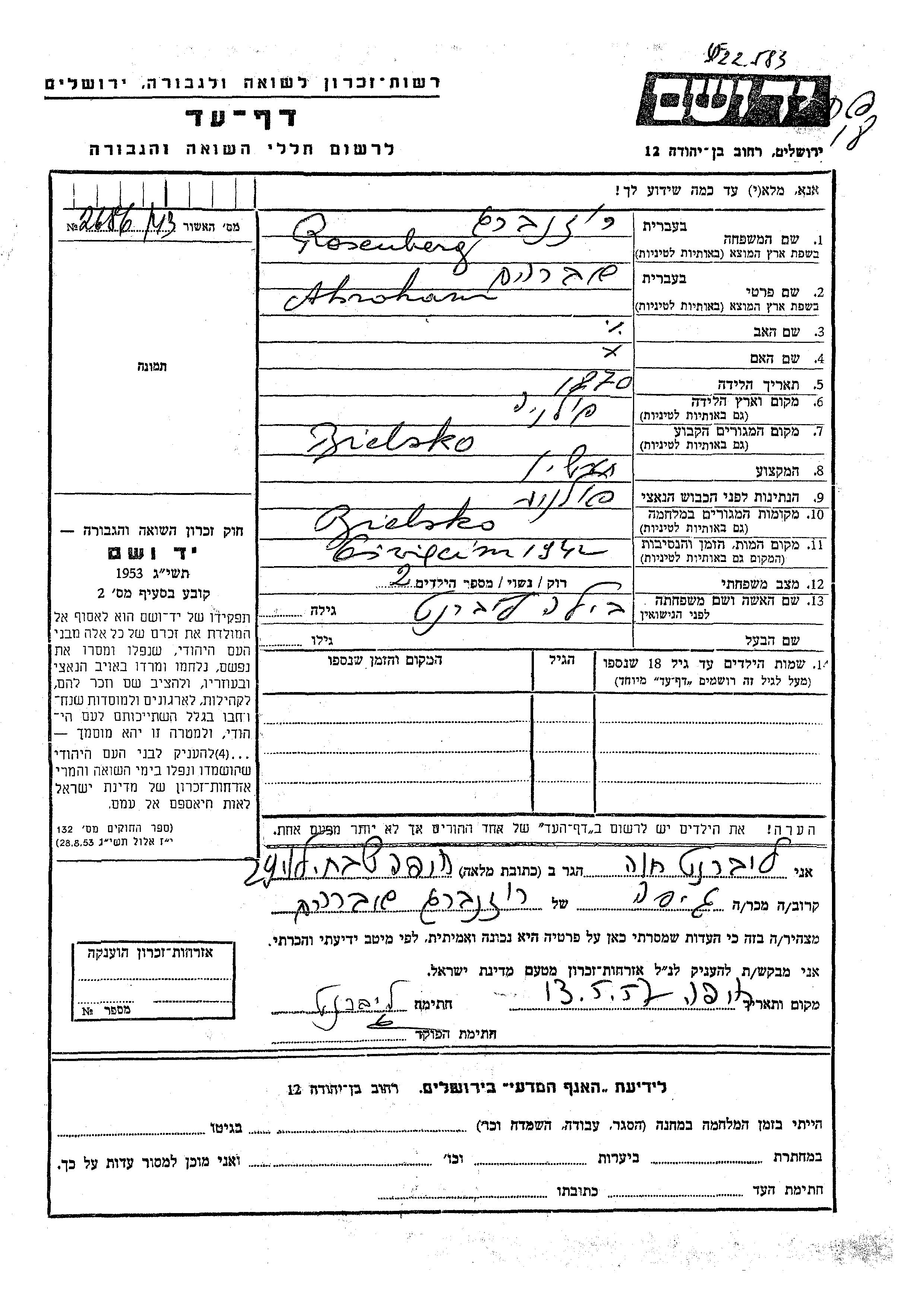 Abraham Rosenberg wurde im Jahr 1870 in Polen geboren. Er war Industrielle/-r und mit Bila, geb. Librent Verheiratet. Vor dem Zweiten Weltkrieg lebte er in Bielsko, Polen. Während des Krieges war er in Bielsko, Polen.