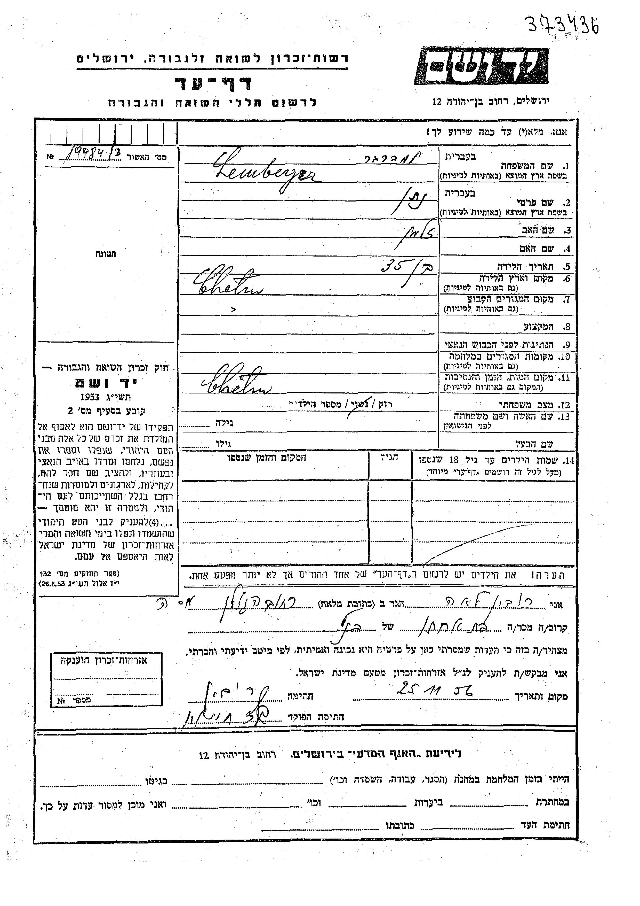 Natan Lemberger wurde in Chelm, Polen geboren. Er war der Sohn von Zalman. Er war Ledig.