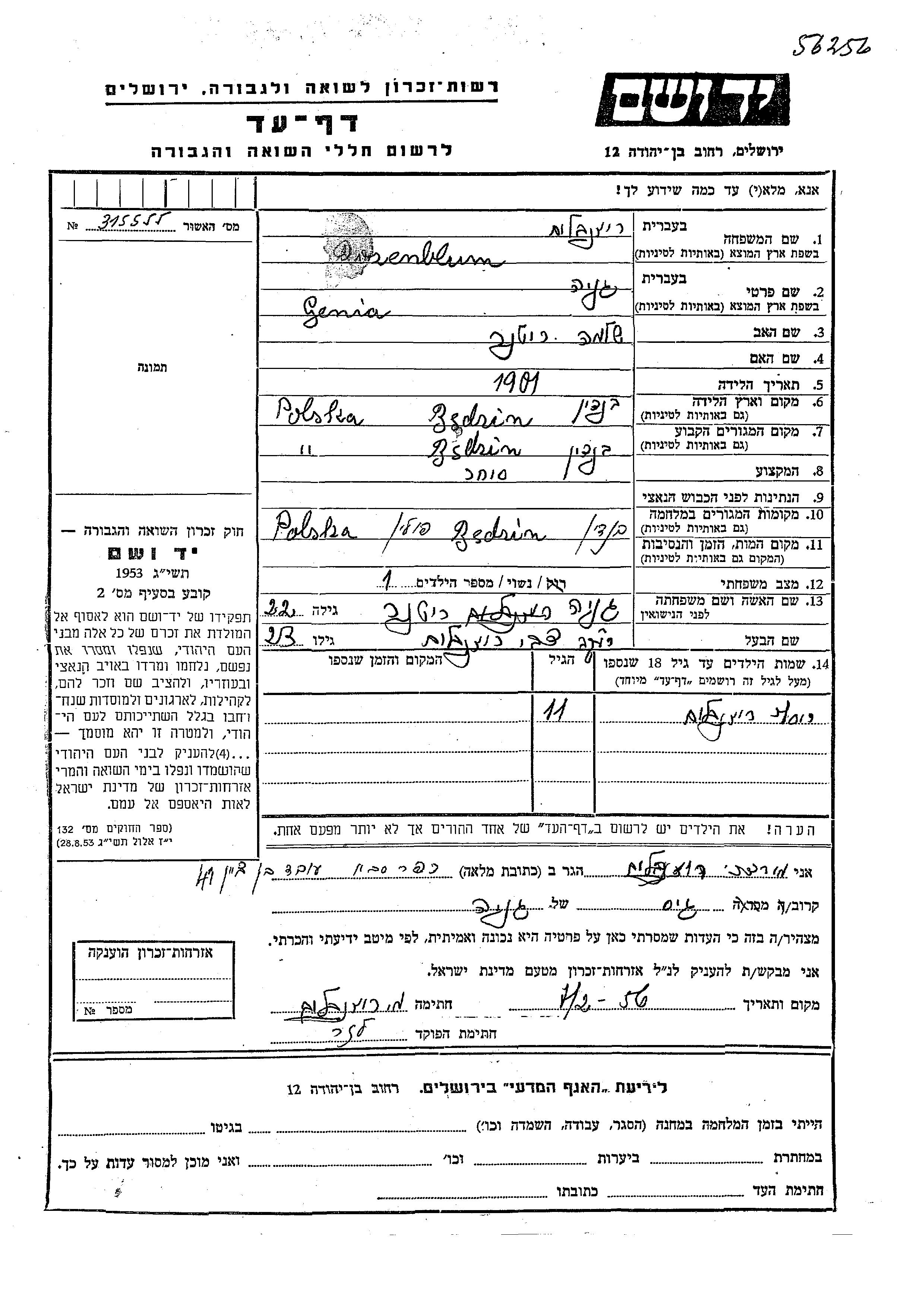 Genia Rosenblum, geb. Rotner wurde im Jahr 1901 in Bendzin, Polen geboren. Sie war die Tochter von Shlomo. Sie war Kaufmann/-frau und mit Yaakov Tzvi Verheiratet. Vor dem Zweiten Weltkrieg lebte sie in Bendzin, Polen. Während des Krieges war sie in Bendzin, Polen.