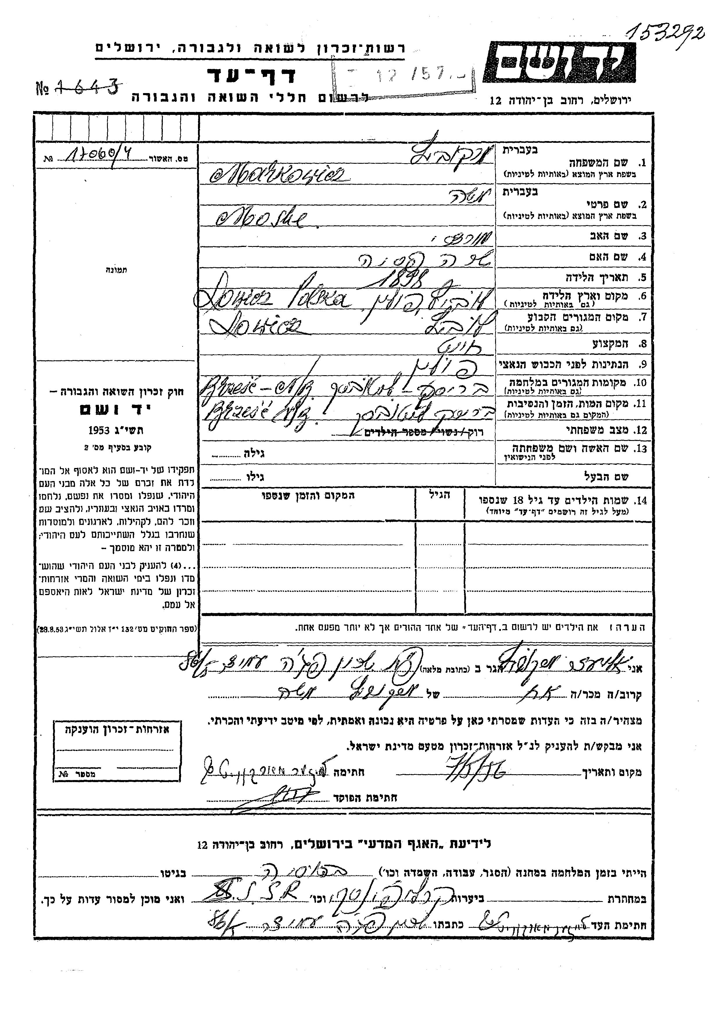 Moshe wurde in der Schoah ermordet. Todesort: Brisk, Polen.