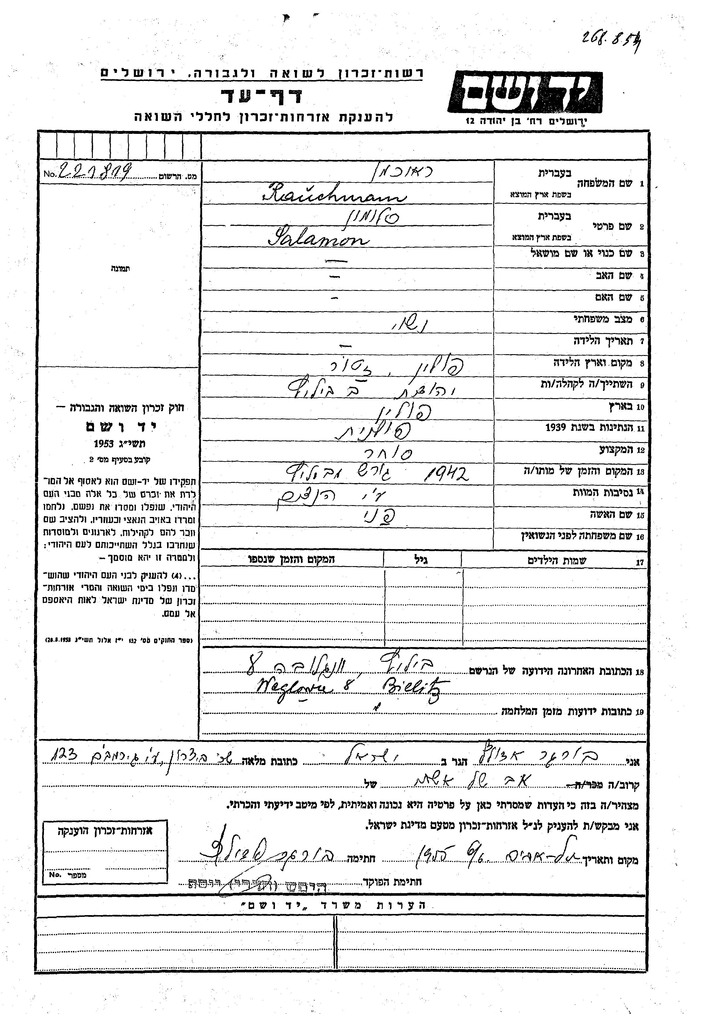 Salamon wurde in der Schoah ermordet. Todesort: unbekannt im Jahr 1942.