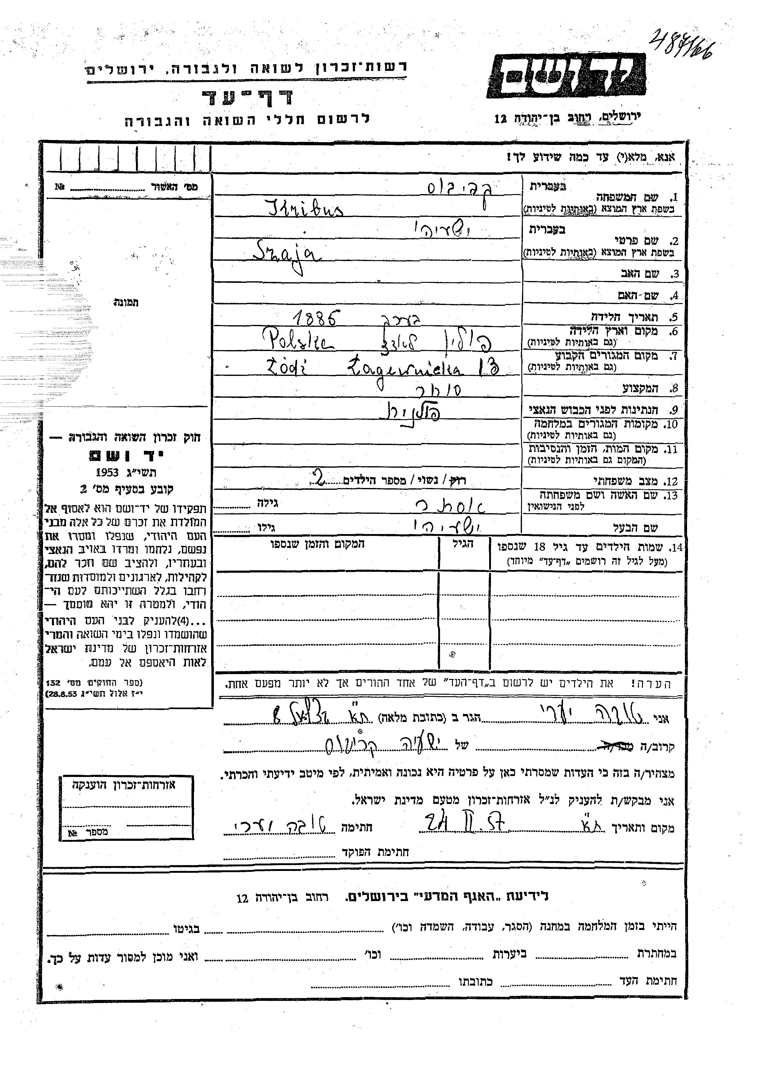 Szaja Kribus wurde im Jahr 1885 in Lodz, Polen geboren. Er war Kaufmann/-frau und mit Ester Verheiratet. Vor dem Zweiten Weltkrieg lebte er in Lodz, Polen.