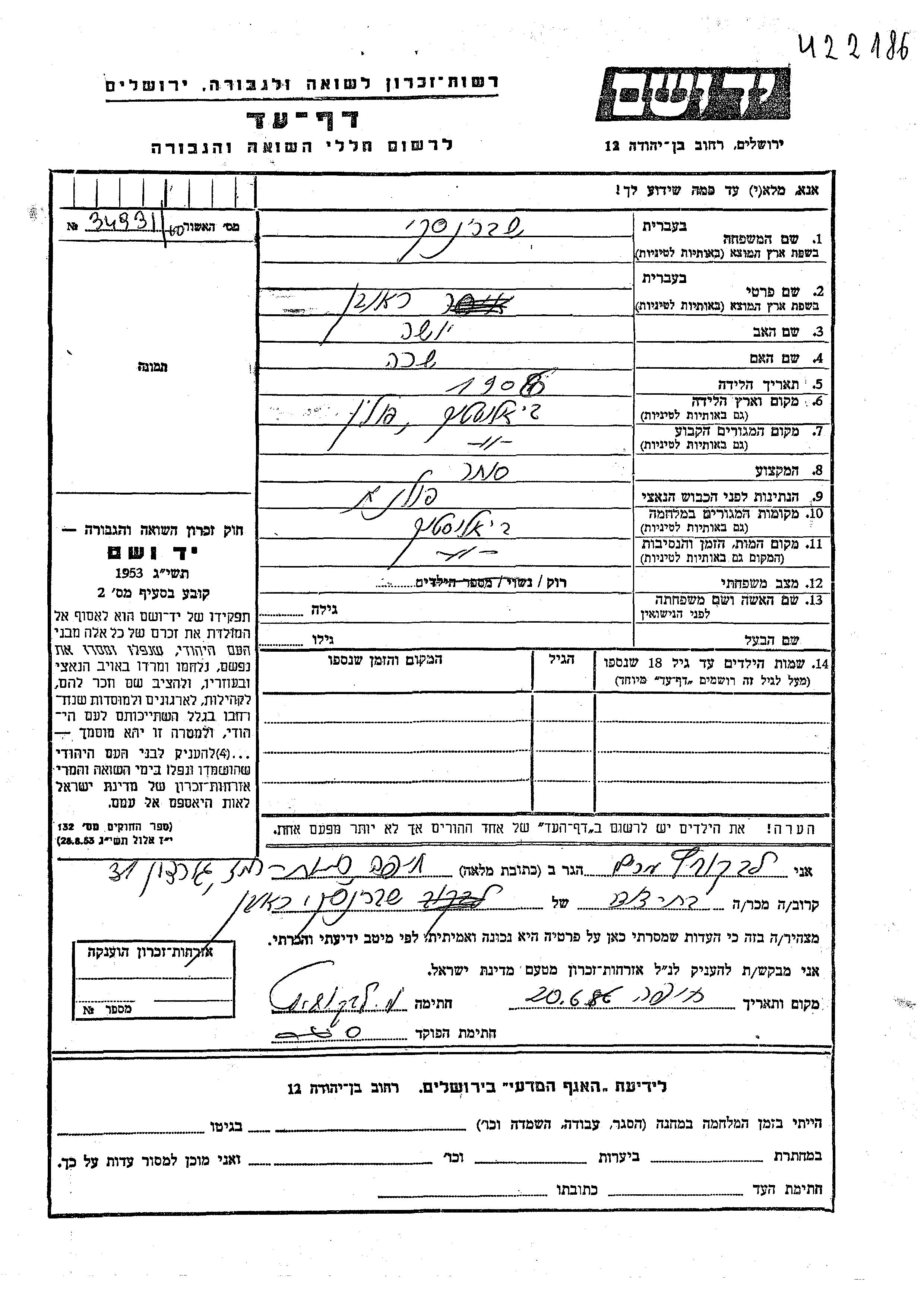Shabrinski Reuven 1906 Bialystok, Polen Gedenkblatt