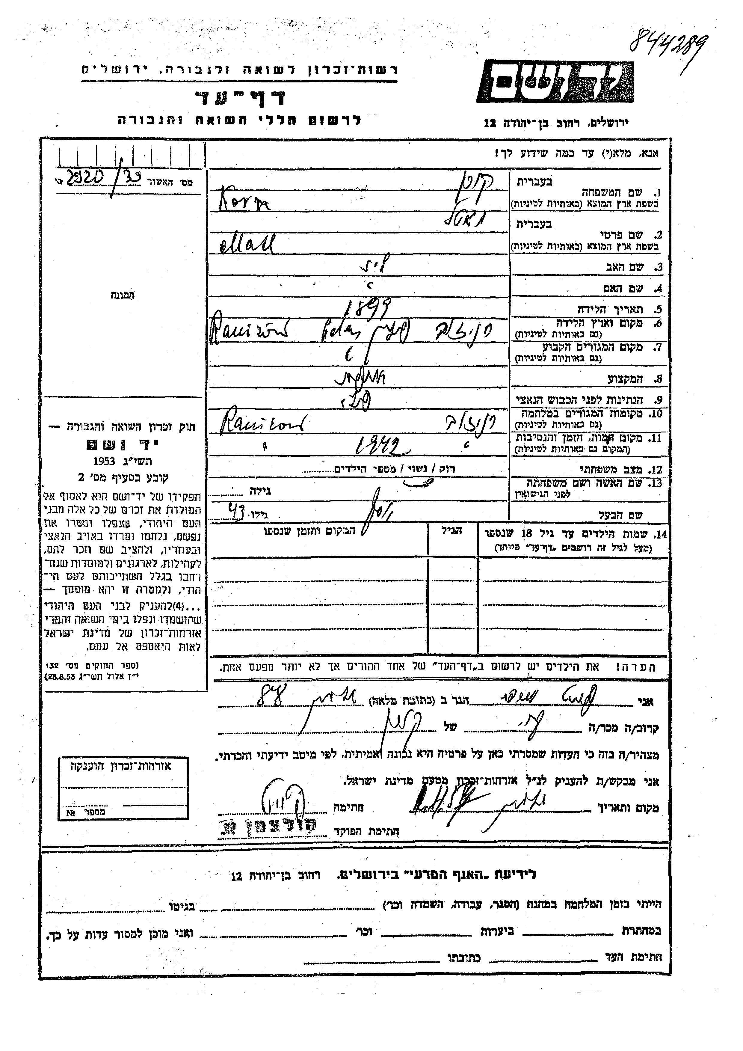 Matl wurde in der Schoah ermordet. Todesort: Ranizow, Polen im Jahr 1942.