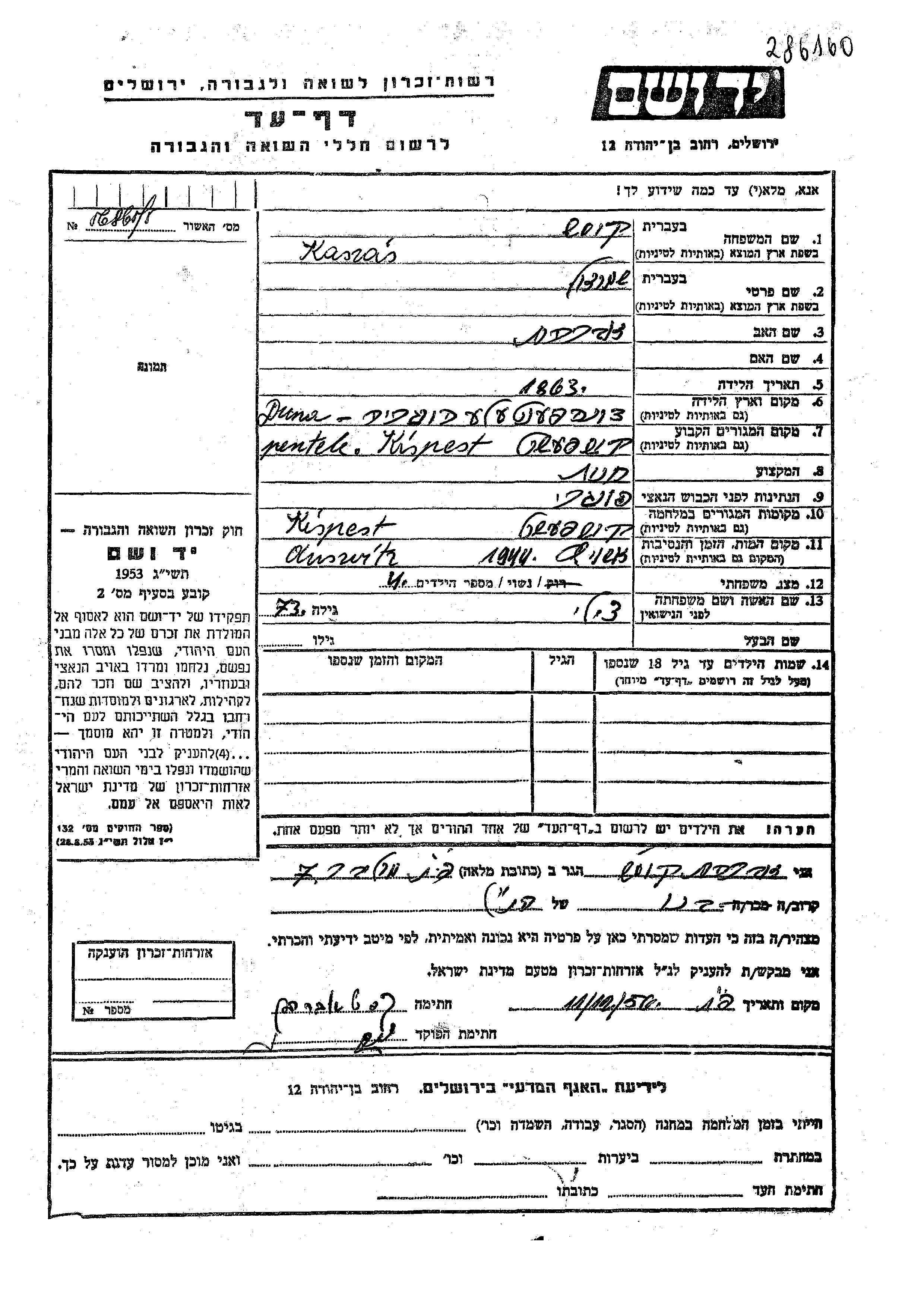 Kaszas Kosash Shmuel 1863 Kispest, Ungarn Gedenkblatt