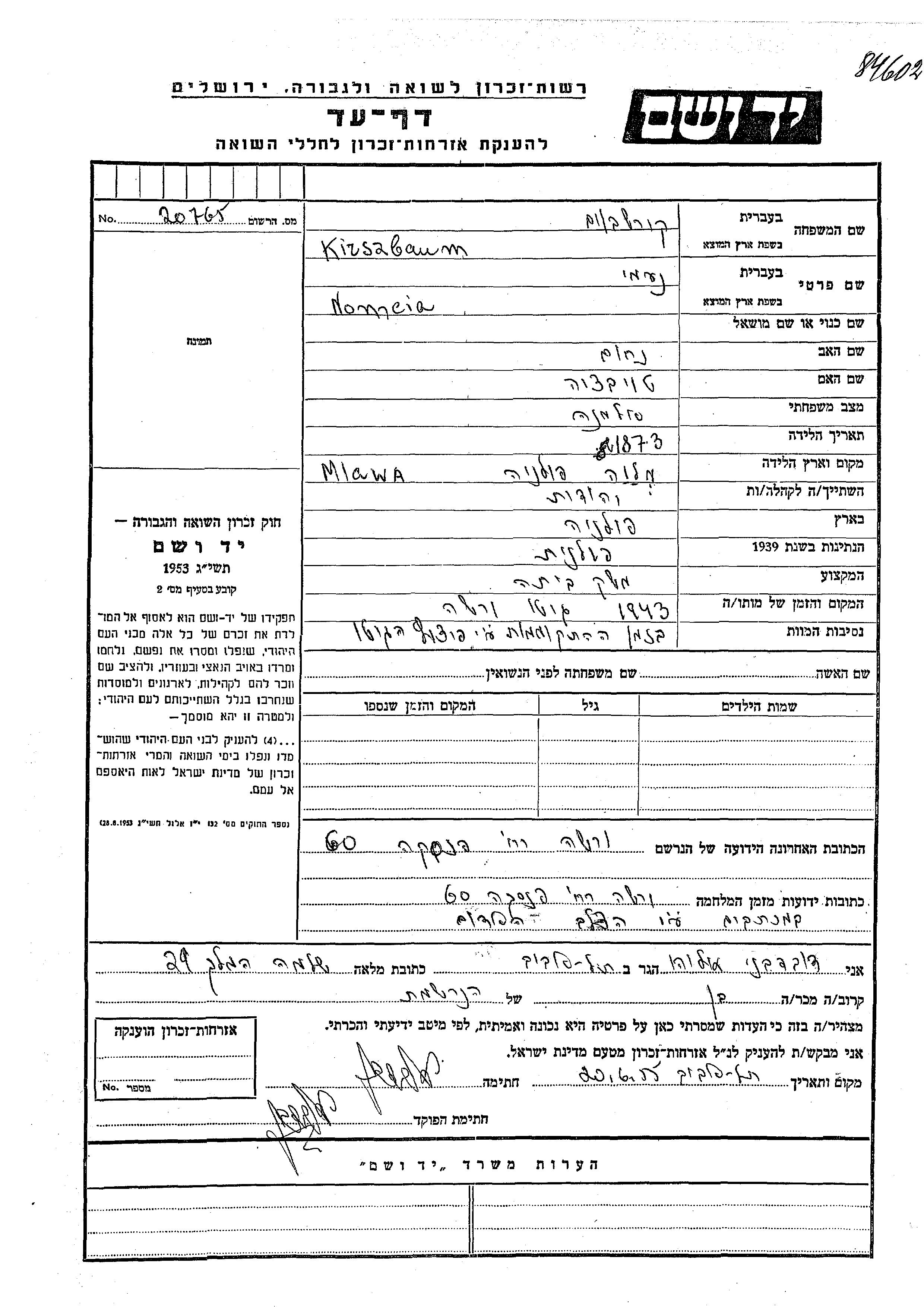 Nomcia wurde in der Schoah ermordet. Todesort: Warsaw, Polen im Jahr 1943.