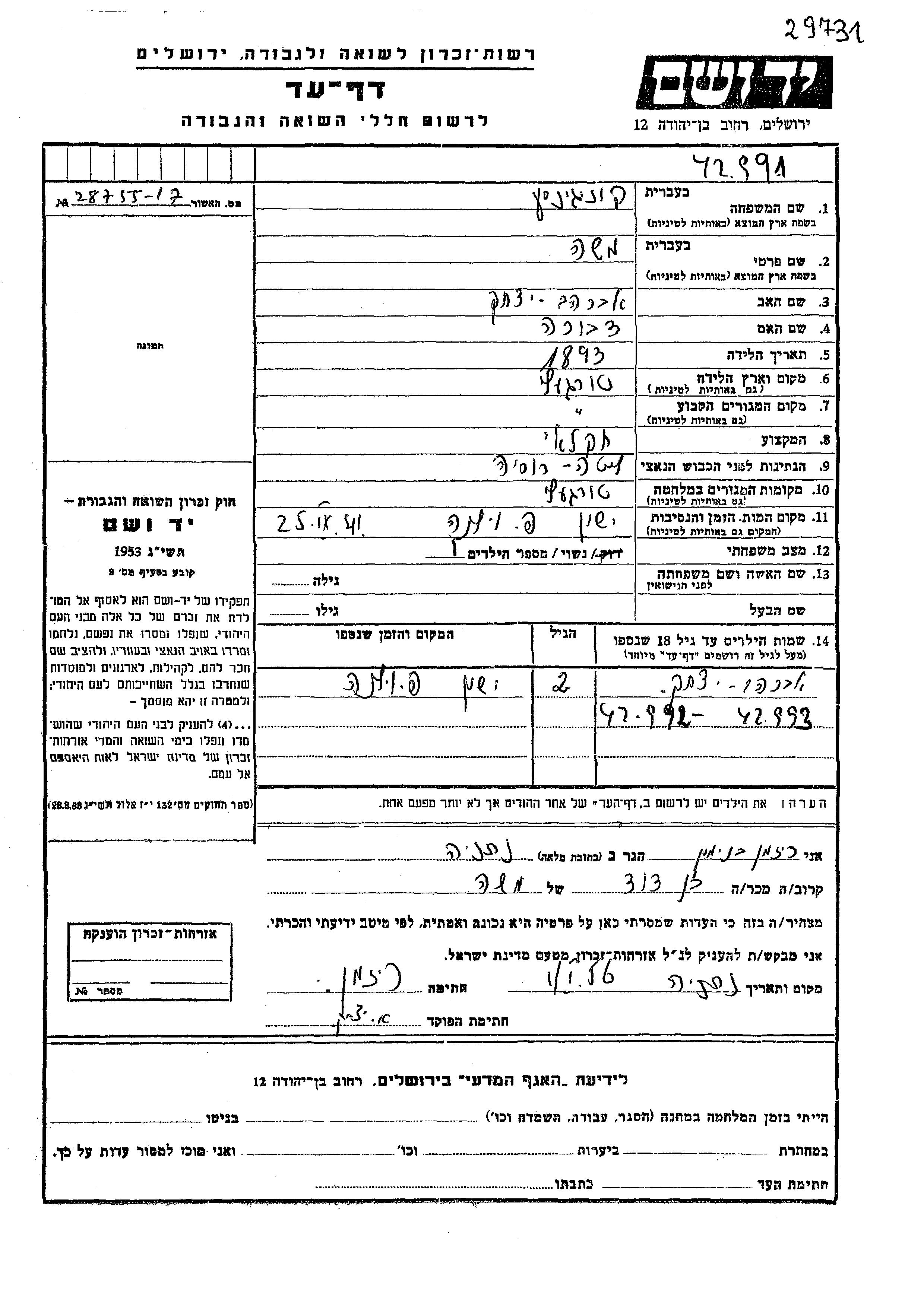 Moshe wurde in der Schoah ermordet. Todesort: Jaszun, Polen im Jahr 25/09/1941.