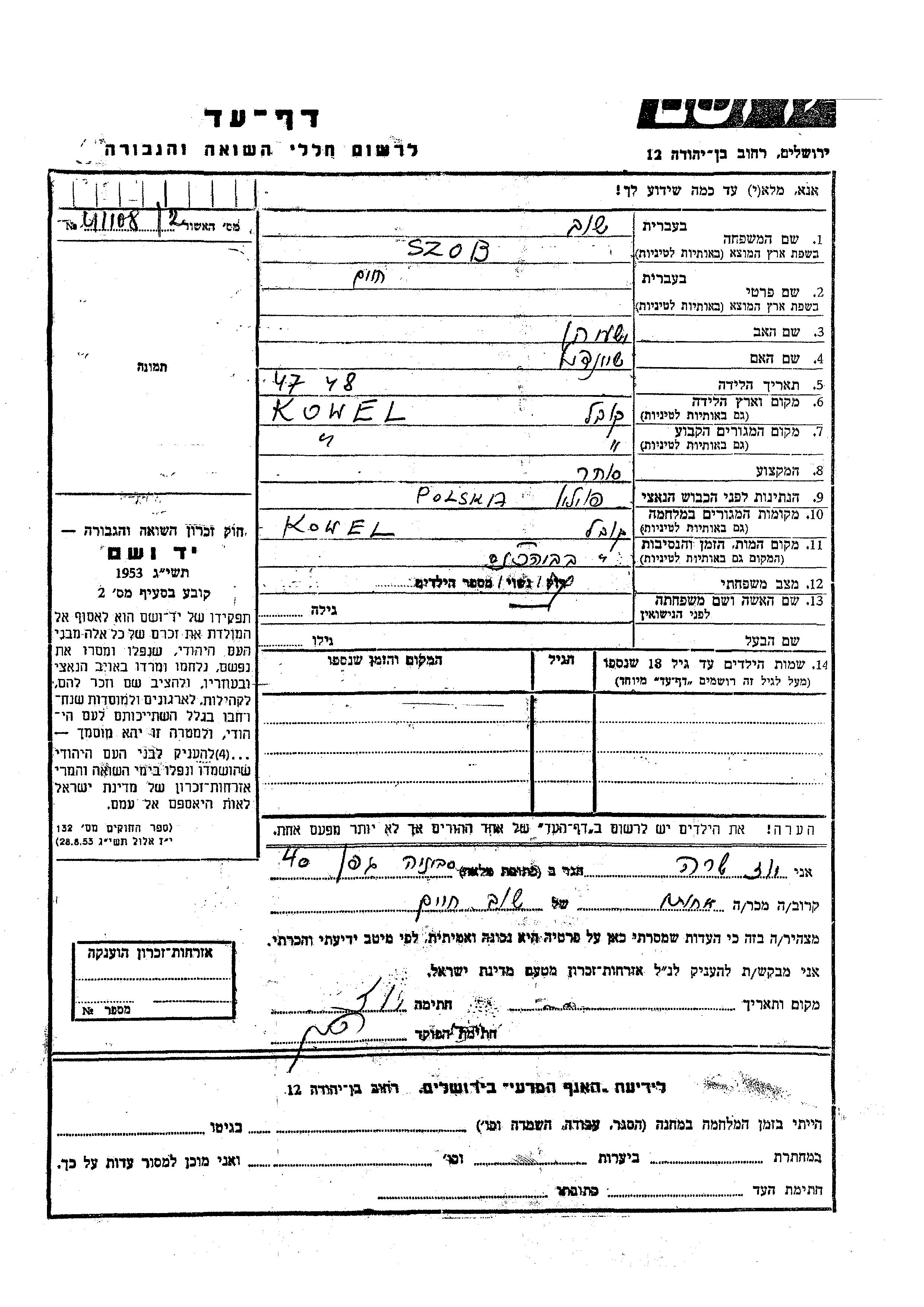 Szob Shub Khaim Kowel, Polen Gedenkblatt