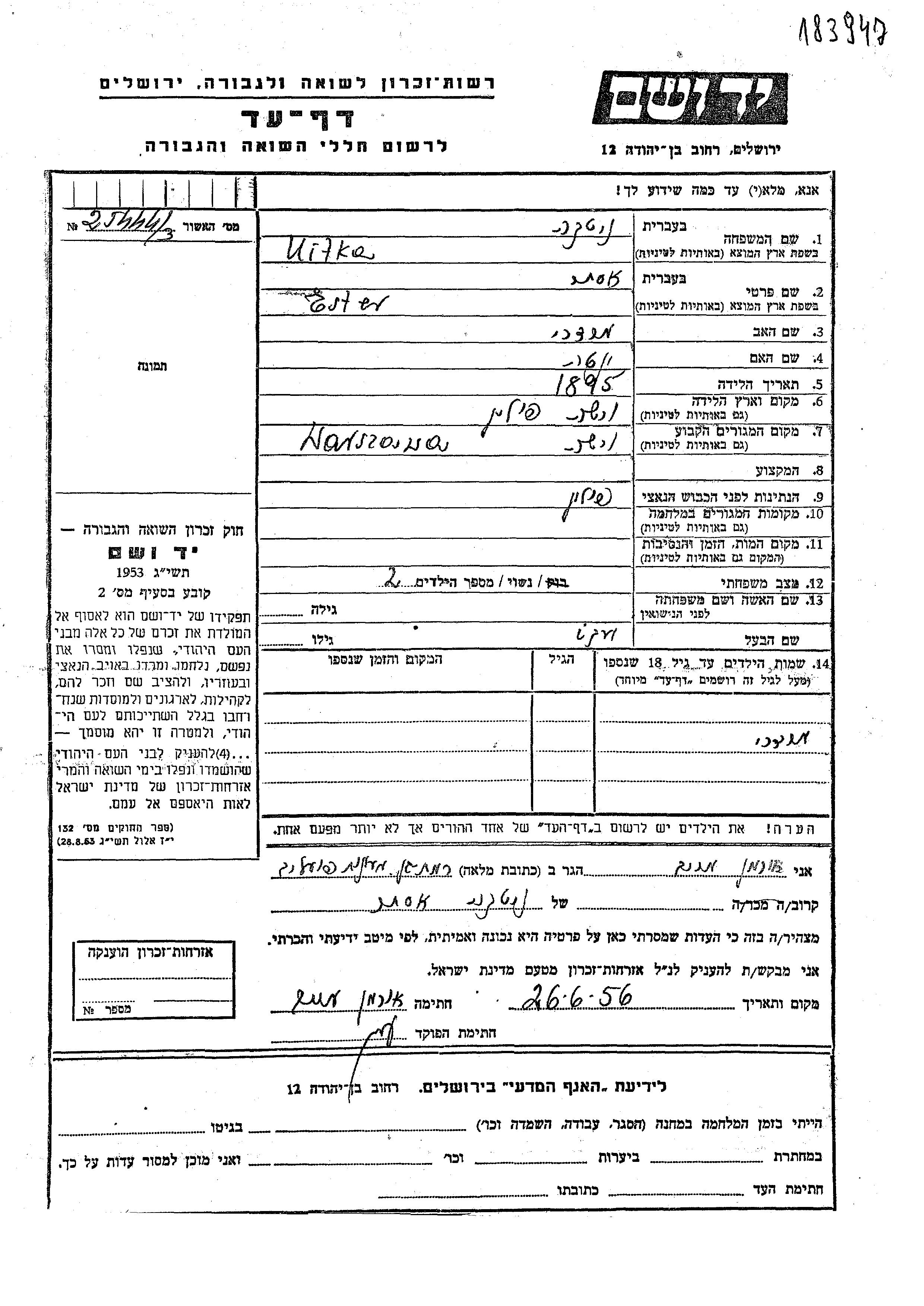 Ester Nitka wurde im Jahr 1895 in Warszawa, Polen geboren. Sie war die Tochter von Mordekhai und Yenta. Sie war mit Yaakov Verheiratet. Vor dem Zweiten Weltkrieg lebte sie in Warszawa, Polen.