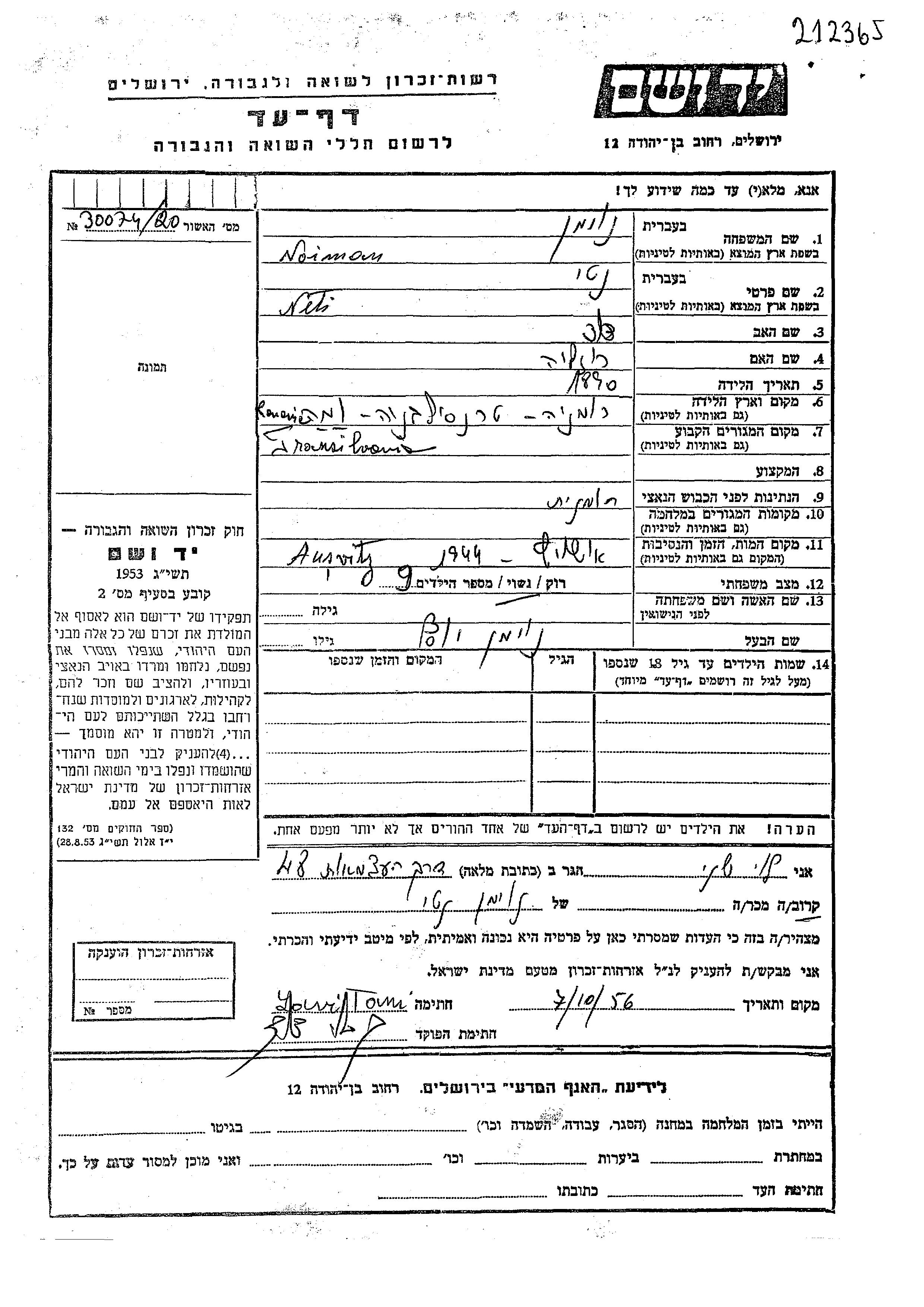 Neti Noiman wurde im Jahr 1890 in Transylvania, Rumänien geboren. Sie war die Tochter von David und Rozalia. Sie war mit Yosef Verheiratet. Vor dem Zweiten Weltkrieg lebte sie in Transylvania, Rumänien.