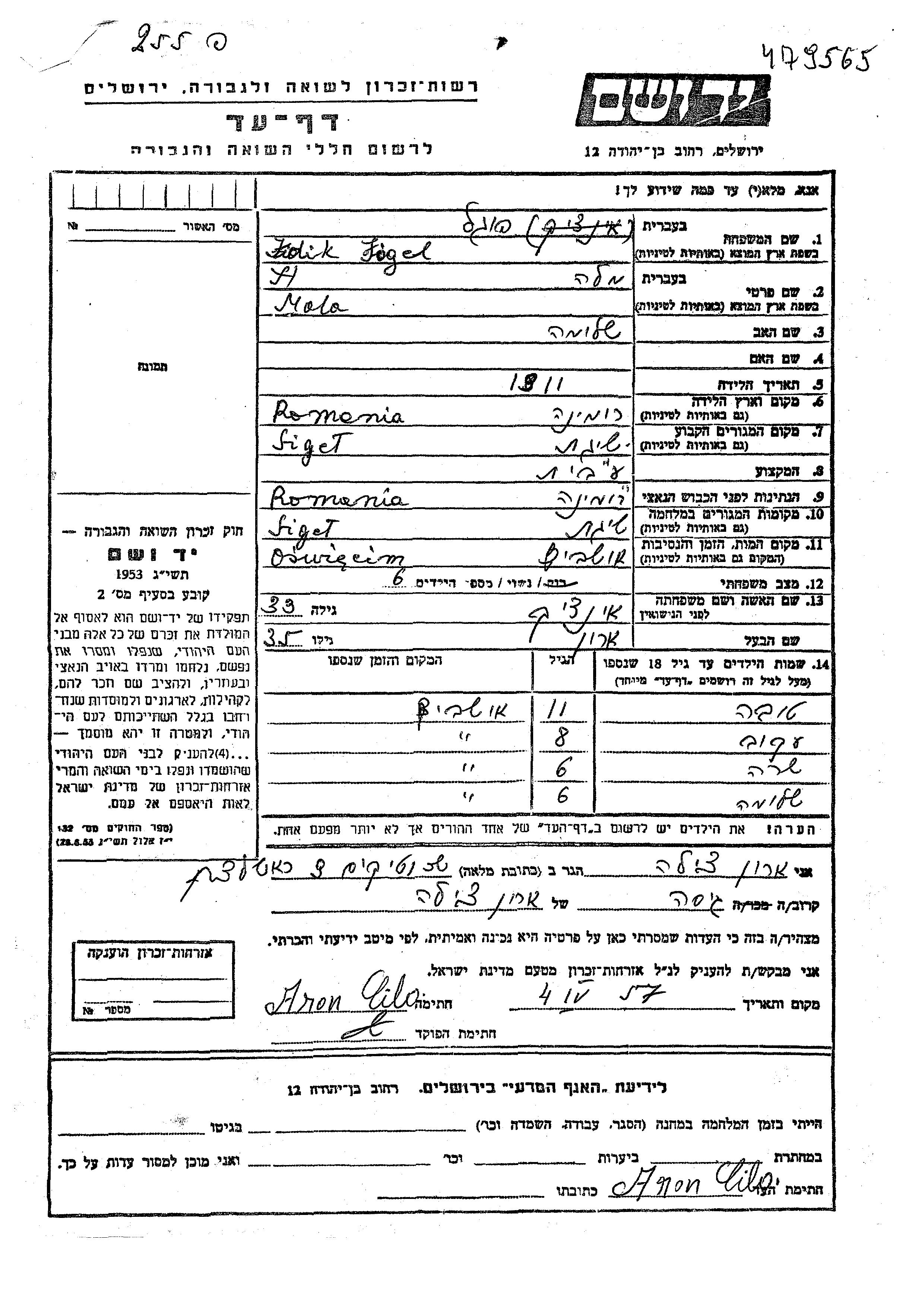 Mala Fogel, geb. Indik wurde im Jahr 1911 in Rumänien geboren. Sie war die Tochter von Shlomo. Sie war Hausfrau und mit Aron Verheiratet. Vor dem Zweiten Weltkrieg lebte sie in Siget, Rumänien. Während des Krieges war sie in Siget, Rumänien.