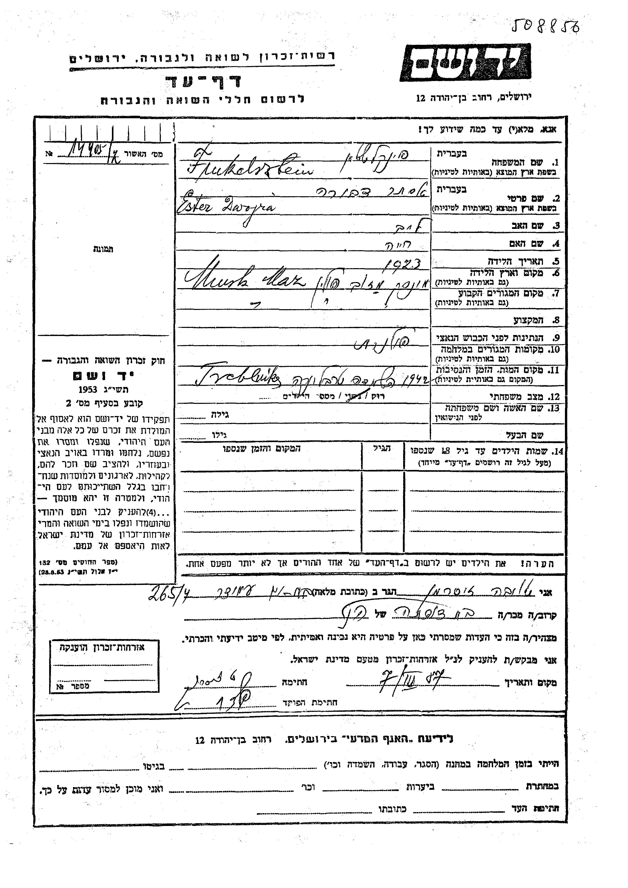 Suche nach einem Todesjahr im Zeitraum der Holocaust: 1933 bis 1945. Bitte wählen Sie 'Exakt' im Auswahlmenü, um nur nach einem einzelnen Jahr zu suchen, alternativ können Sie die flexibleren Optionen '+/- 2 Jahre' oder '+/- 5 Jahre' wählen.