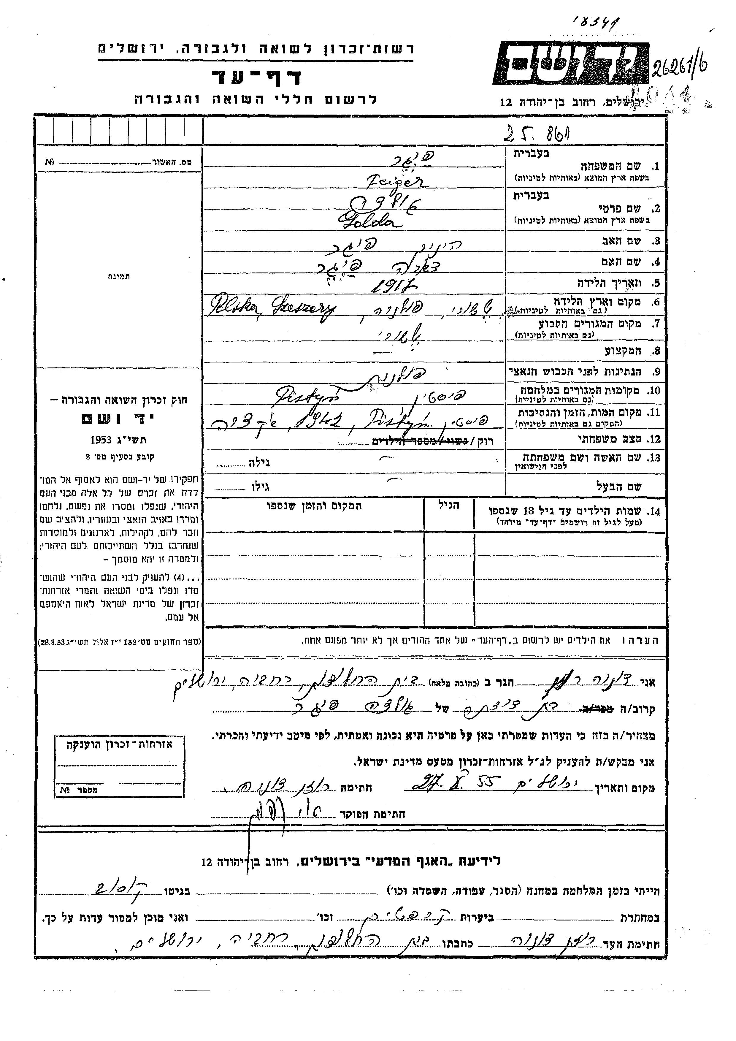 Golda wurde in der Schoah ermordet. Todesort: Pistyń, Polen im Jahr 1942.