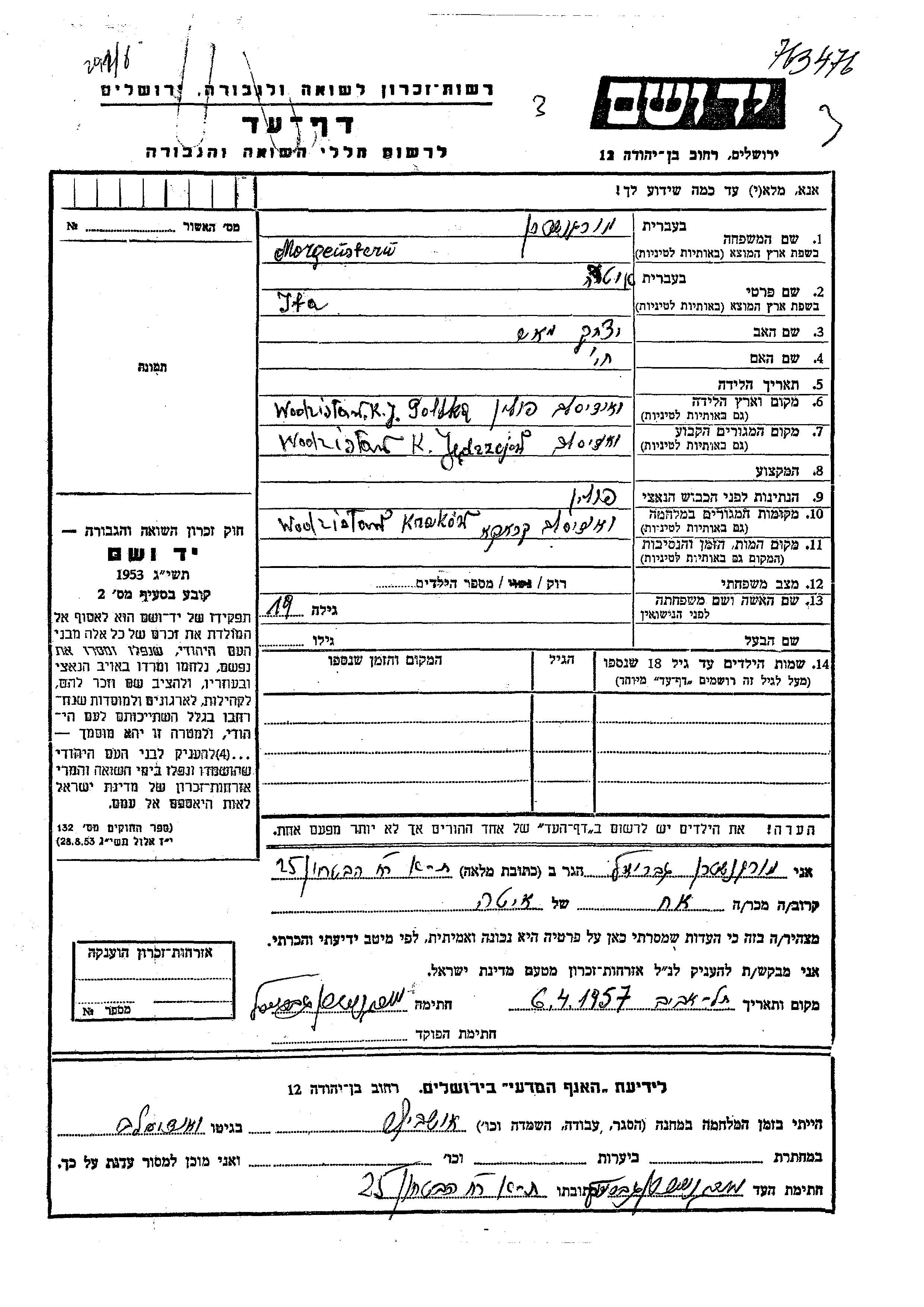 Morgenstern Morgenshtein Ita Wodzislaw, Polen Gedenkblatt