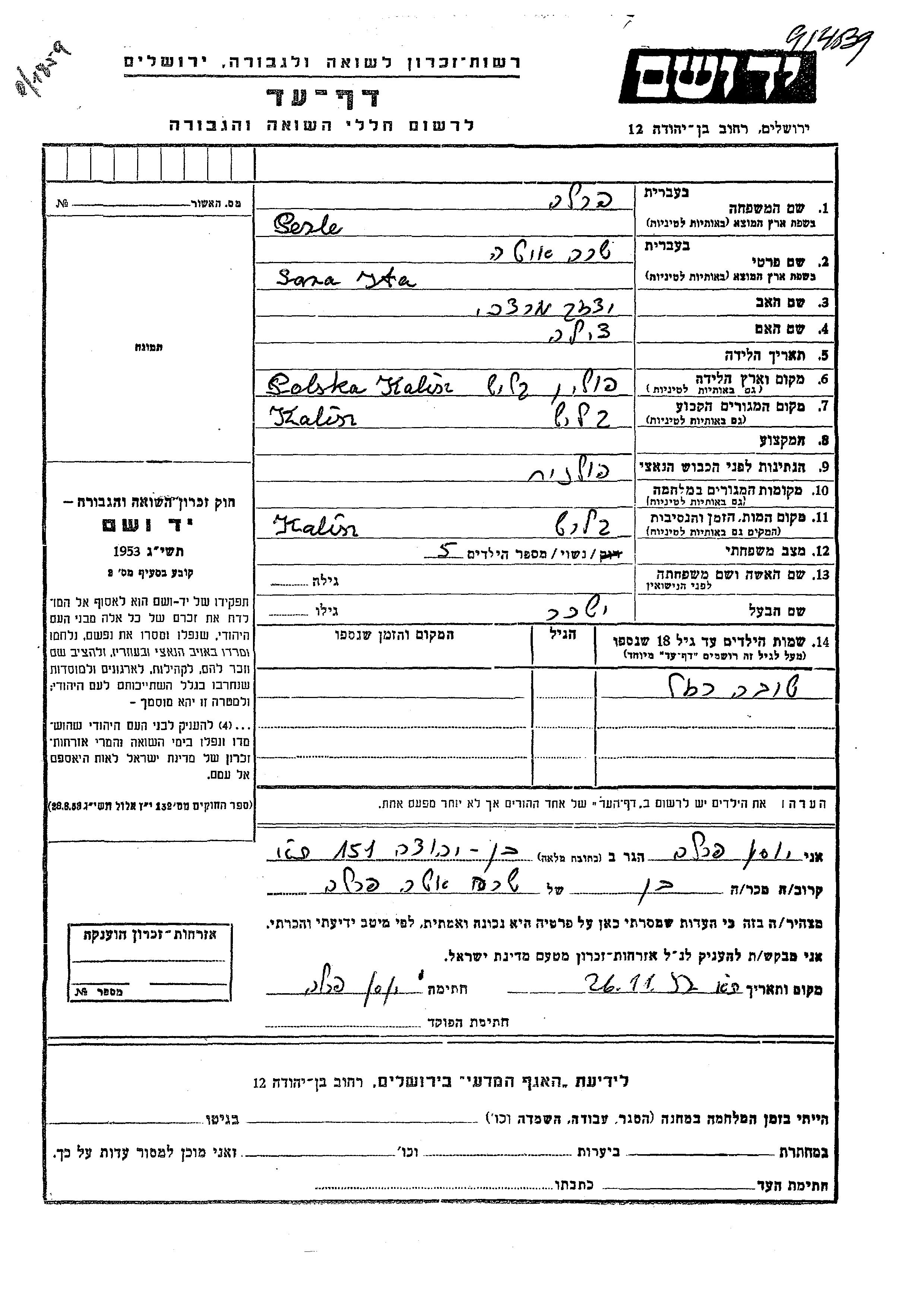 Perla Sara Ita Kalisz, Polen Gedenkblatt