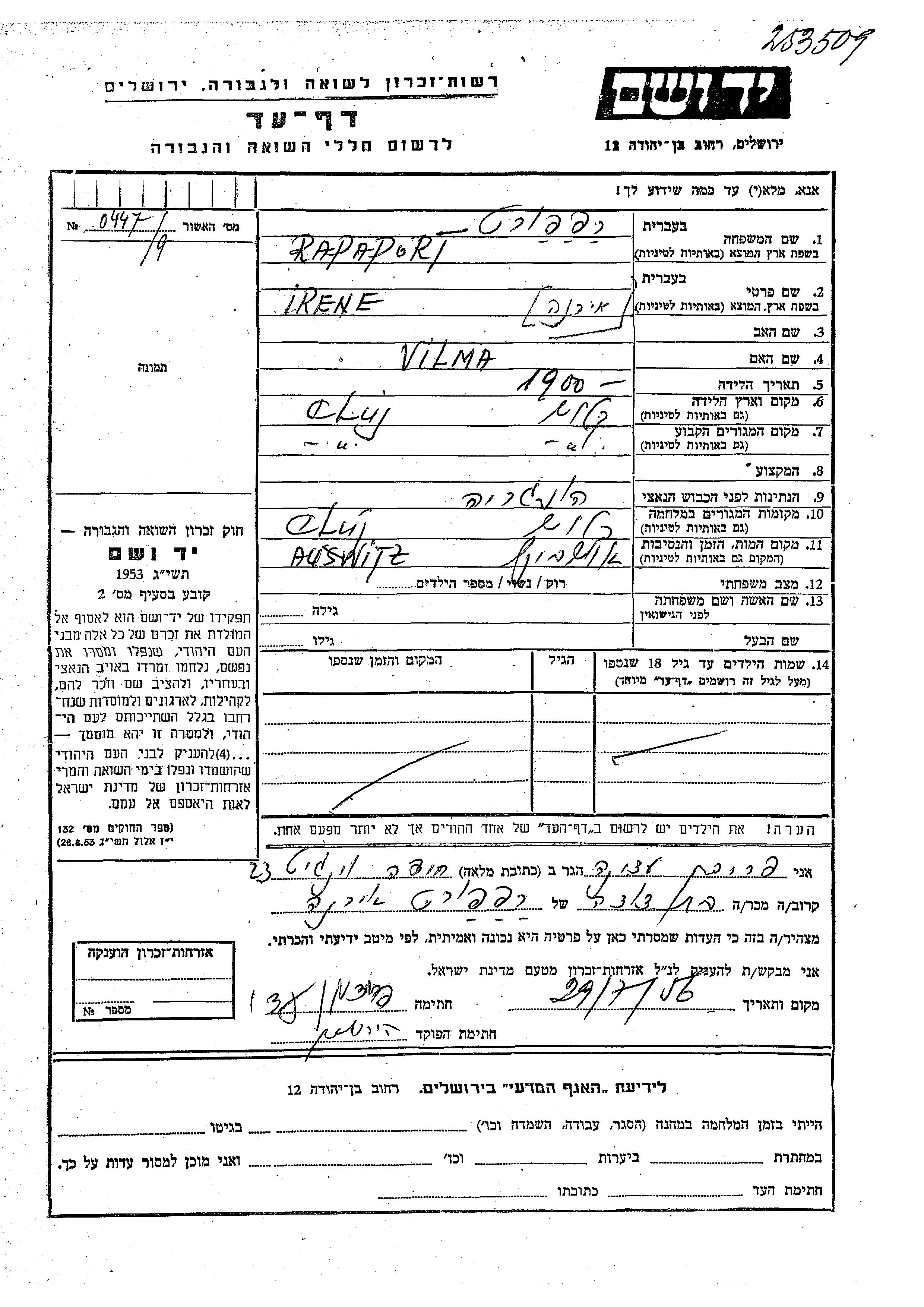 Rapaport Irene 1900 Cluj, Rumänien Gedenkblatt