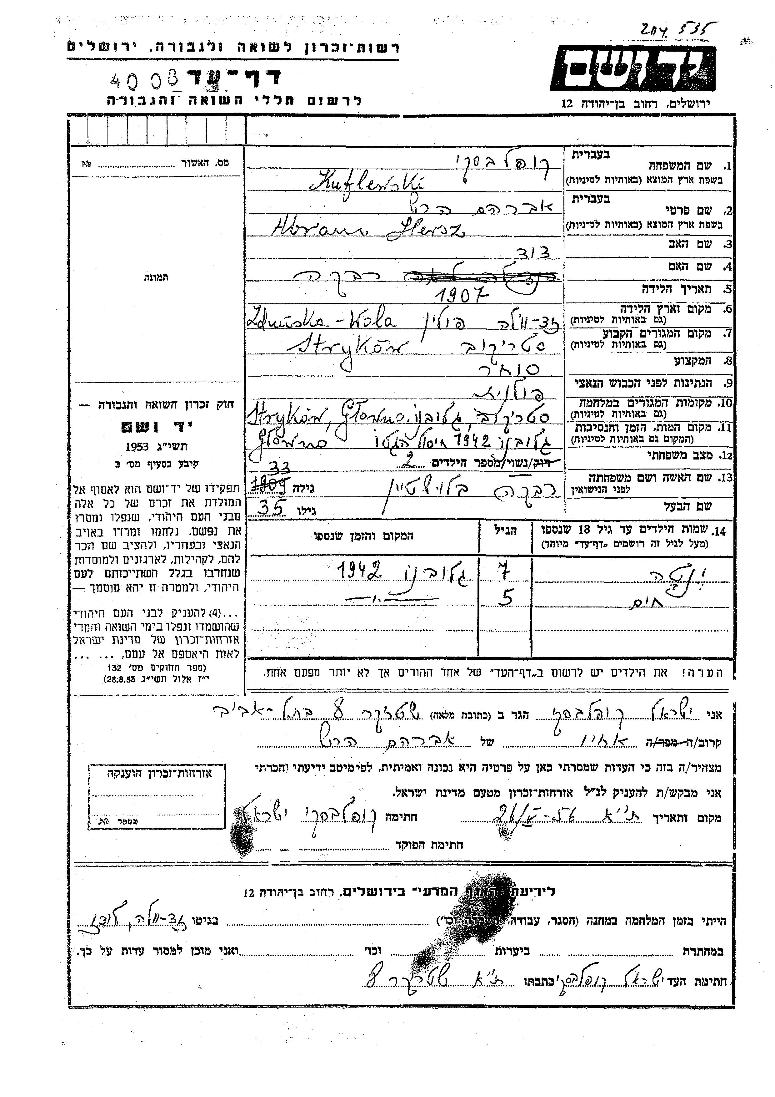 Kuflewski Abram Hersz 1907 Strykow, Polen Gedenkblatt