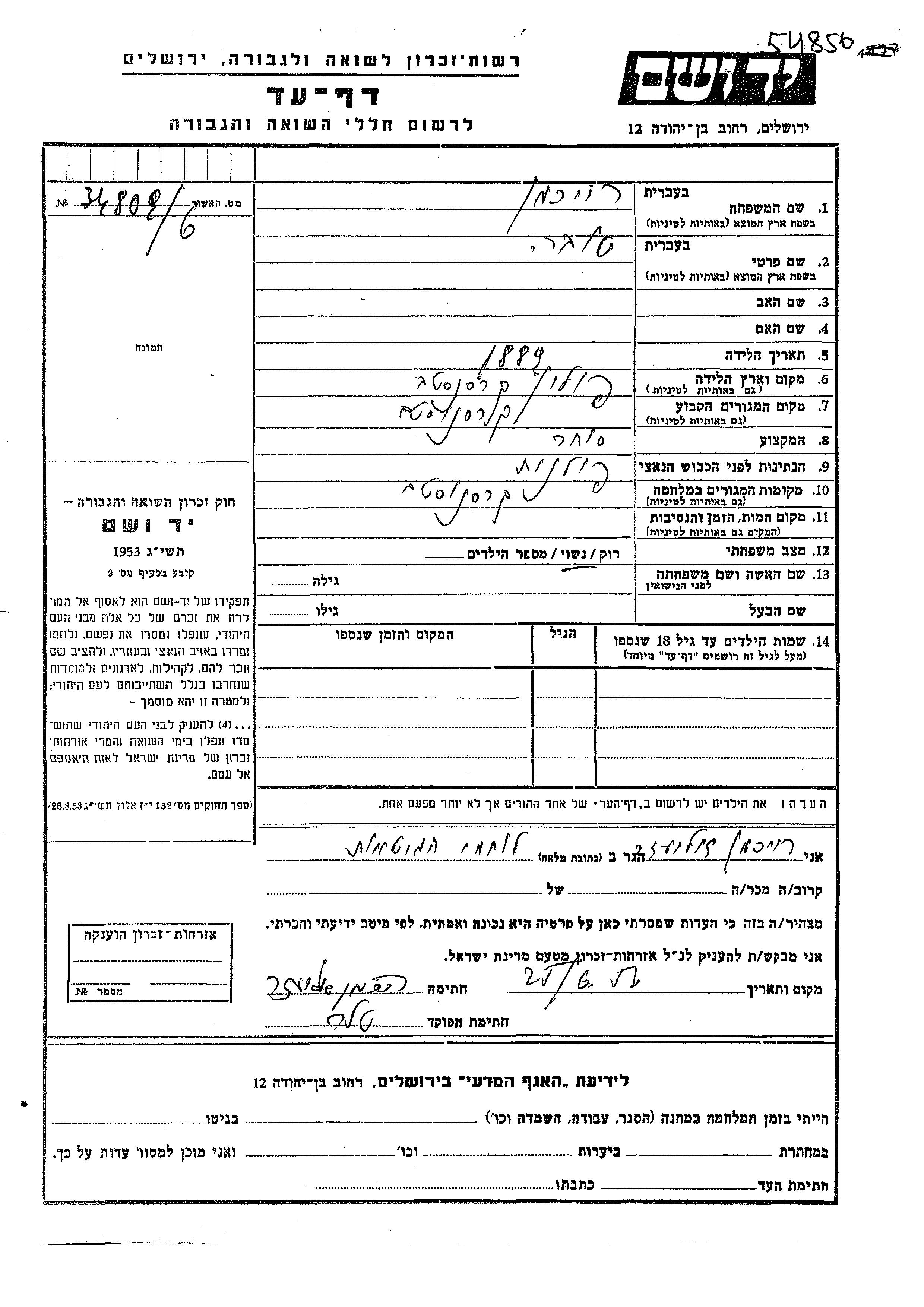 Tova Reikhman wurde im Jahr 1889 in Krasnostaw, Polen geboren. Sie war Kaufmann/-frau und Verheiratet. Vor dem Zweiten Weltkrieg lebte sie in Krasnostaw, Polen. Während des Krieges war sie in Krasnostaw, Polen.