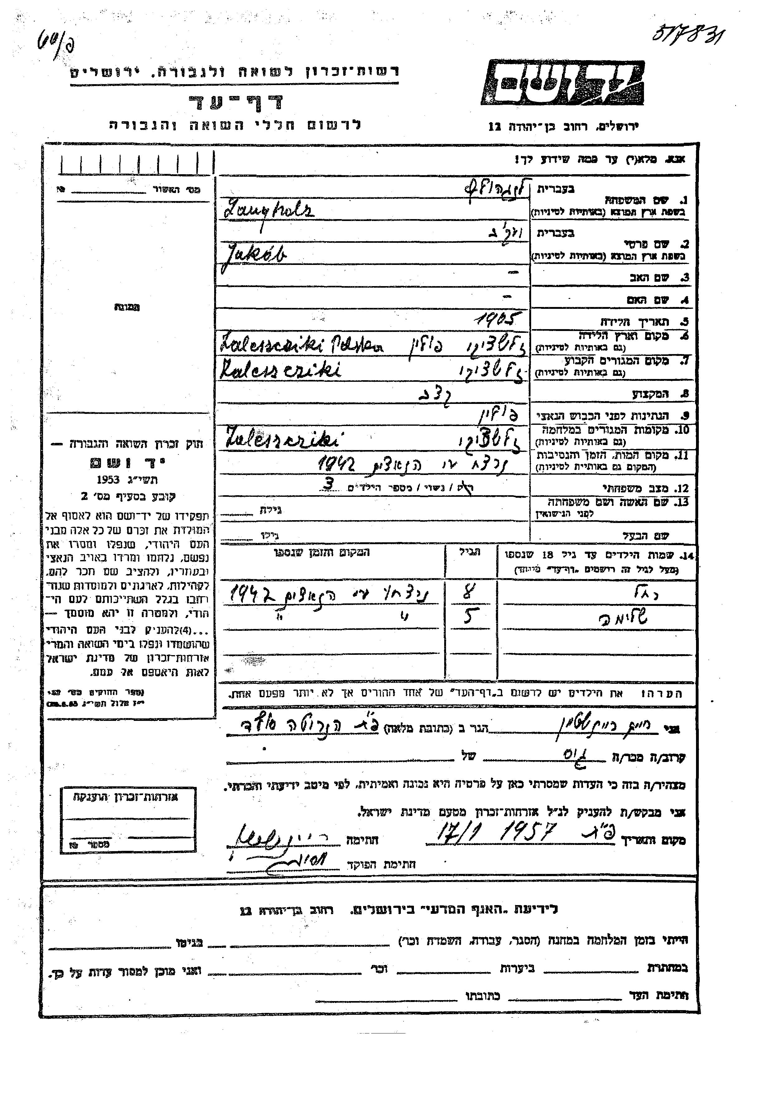 Jakob Langholz wurde im Jahr 1905 in Zaleszczyki, Polen geboren. Er war Metzger/-in und Verheiratet. Vor dem Zweiten Weltkrieg lebte er in Zaleszczyki, Polen. Während des Krieges war er in Zaleszczyki, Polen.