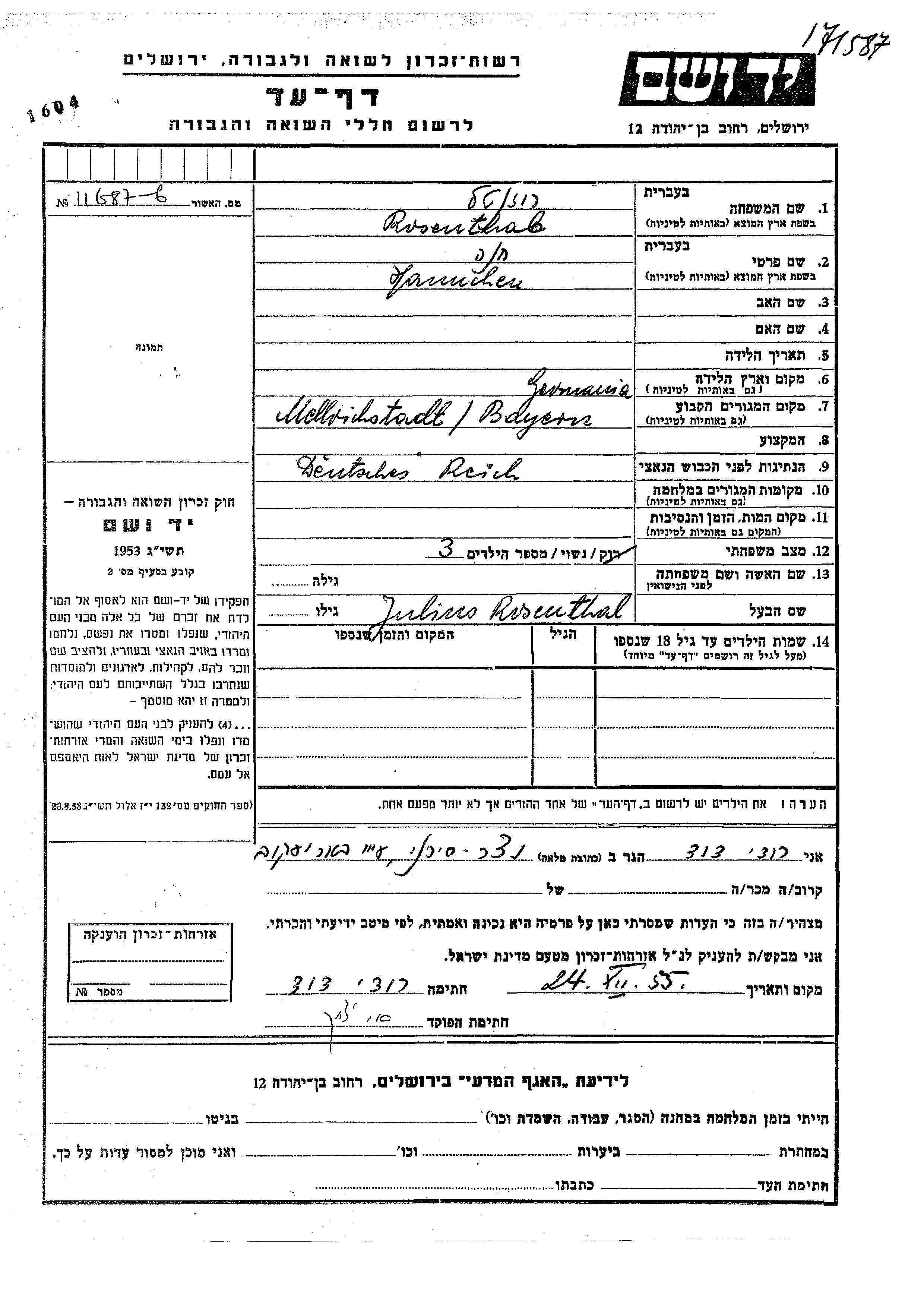 Hannchen Rozenthal wurde in Deutsches Reich geboren. Sie war mit Julius Verheiratet. Vor dem Zweiten Weltkrieg lebte sie in Mellrichstadt, Deutsches Reich.
