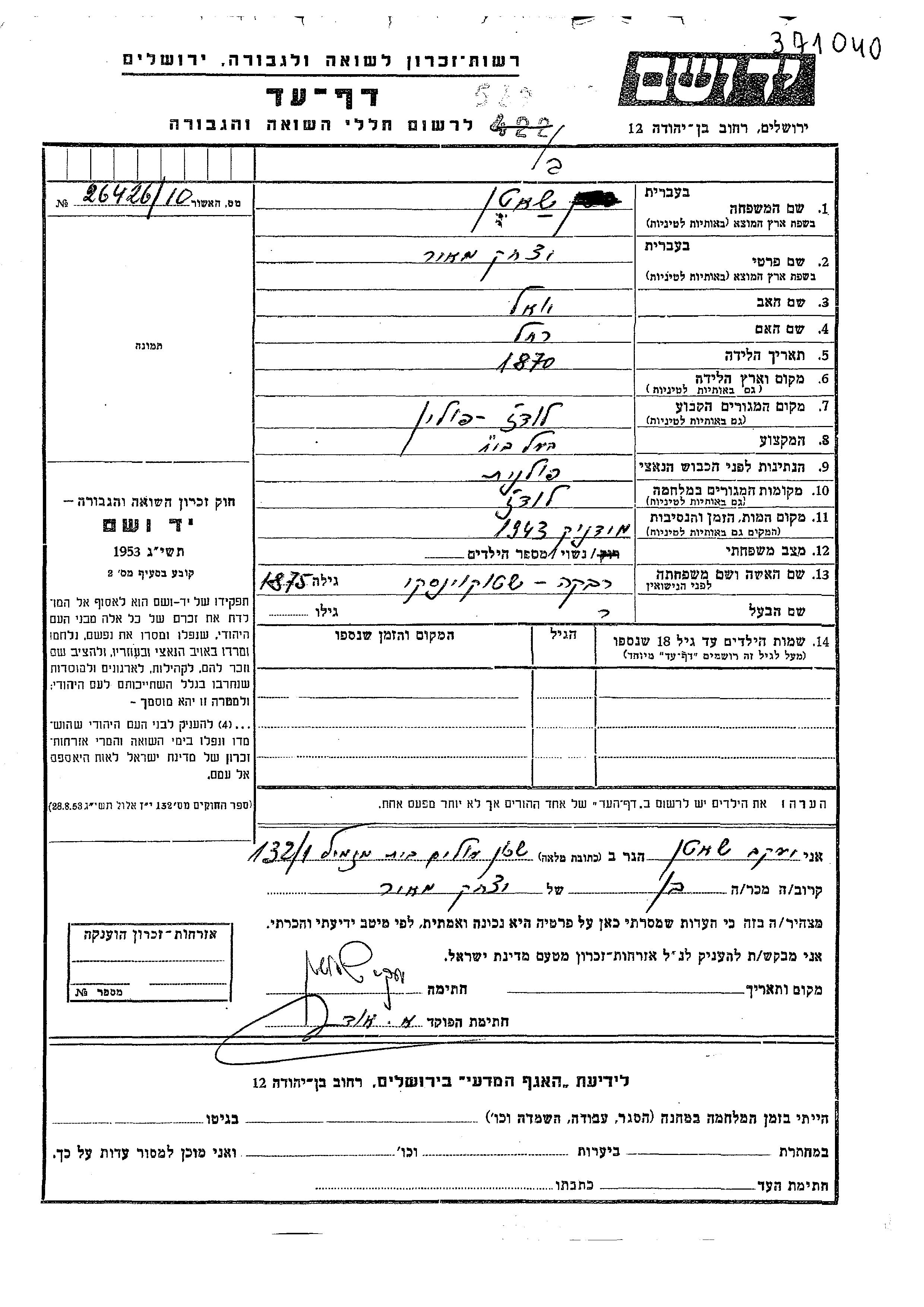 Yitzkhak Meir wurde in der Schoah ermordet. Todesort: Majdanek, Polen im Jahr 1943.