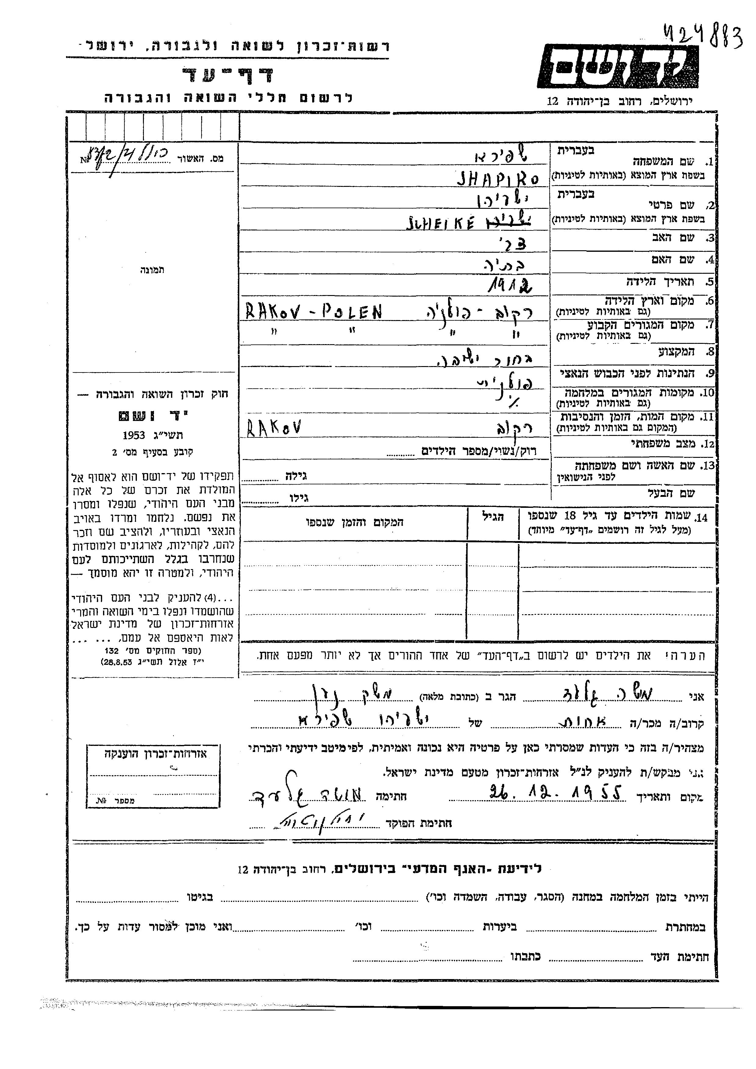 Scheike Yeshayahu Shapiro wurde im Jahr 1912 in Rakow, Polen geboren. Er war der Sohn von Tzvi und Batia. Er war Jeschiwahschüler. Vor dem Zweiten Weltkrieg lebte er in Rakow, Polen.