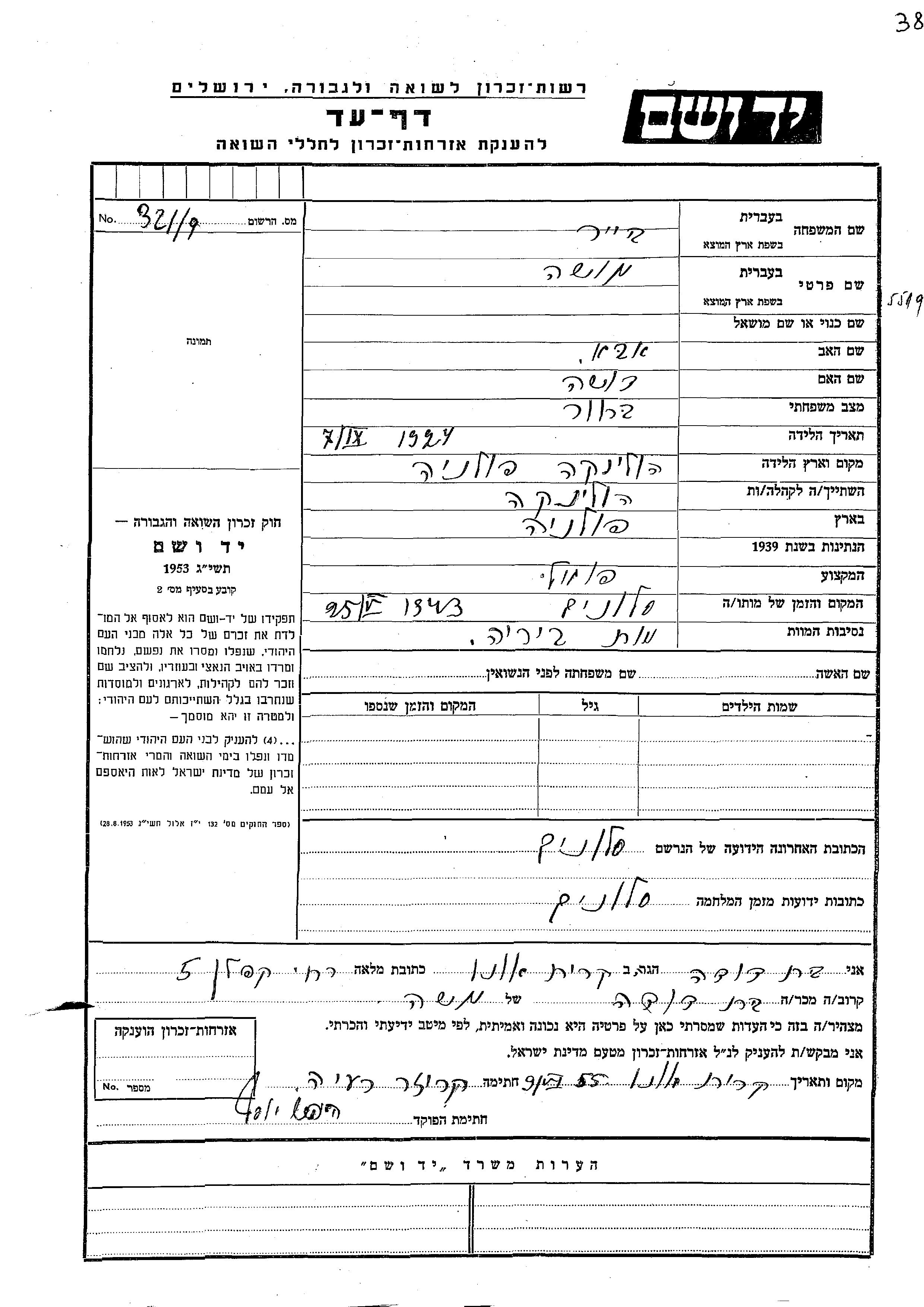 Moshe wurde in der Schoah ermordet. Todesort: Slonim, Polen im Jahr 25/05/1943.