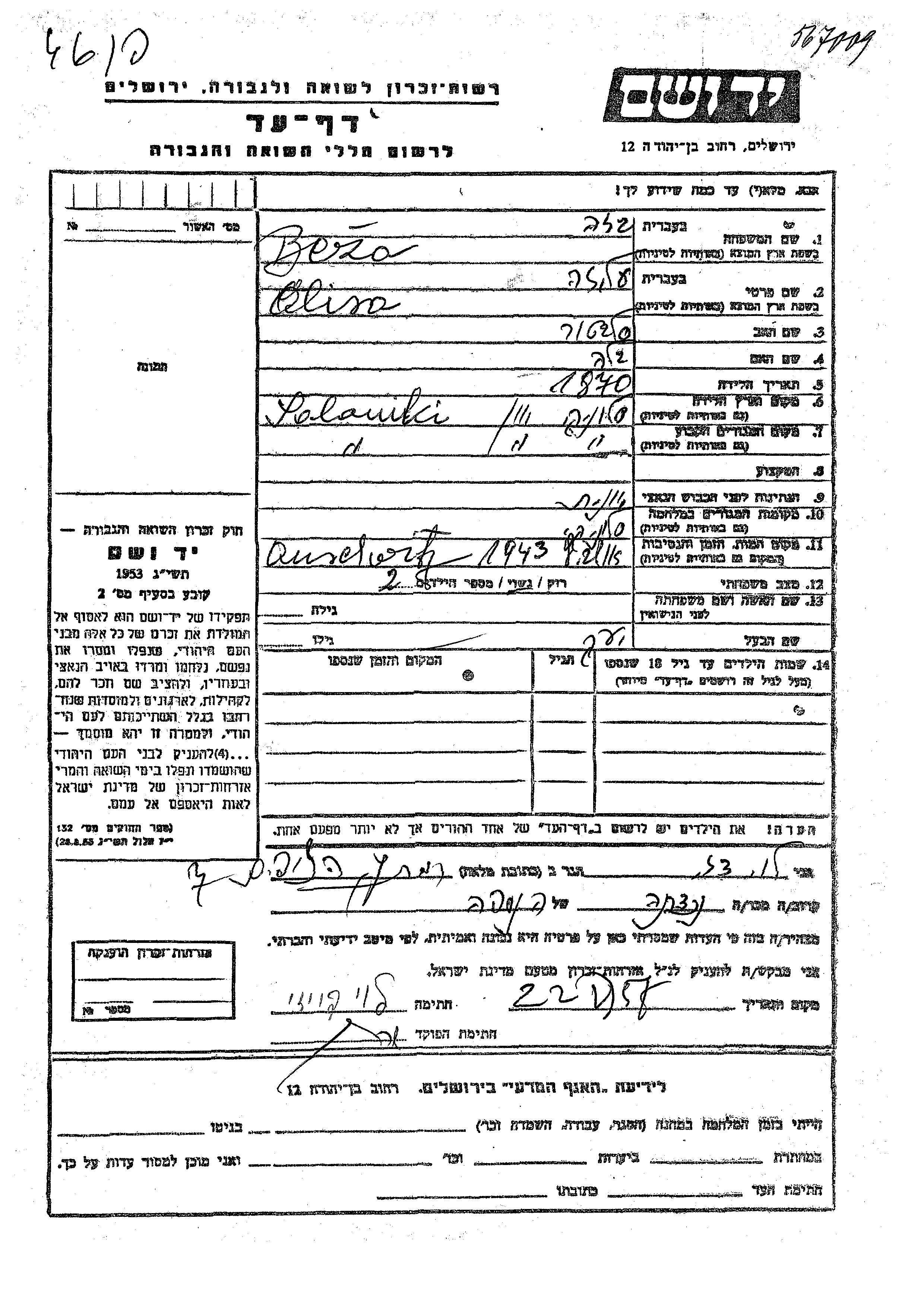Aliza wurde in der Schoah ermordet. Todesort: Auschwitz, Polen im Jahr 1943.