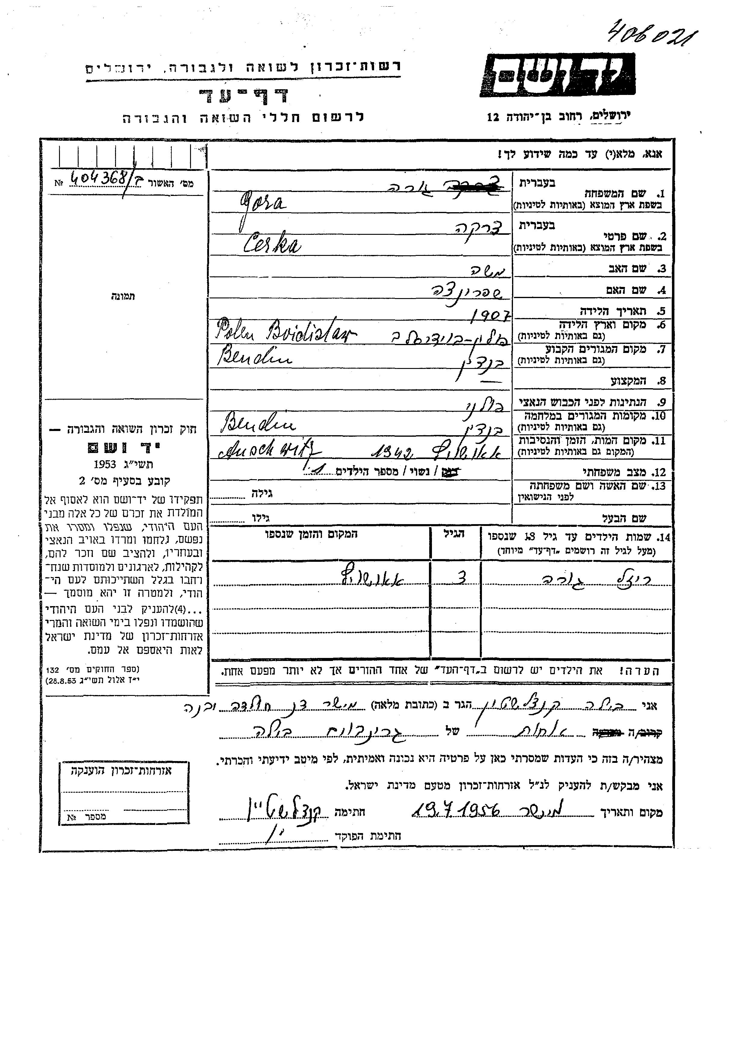 Cerka wurde in der Schoah ermordet. Todesort: Auschwitz, Polen im Jahr 1942.