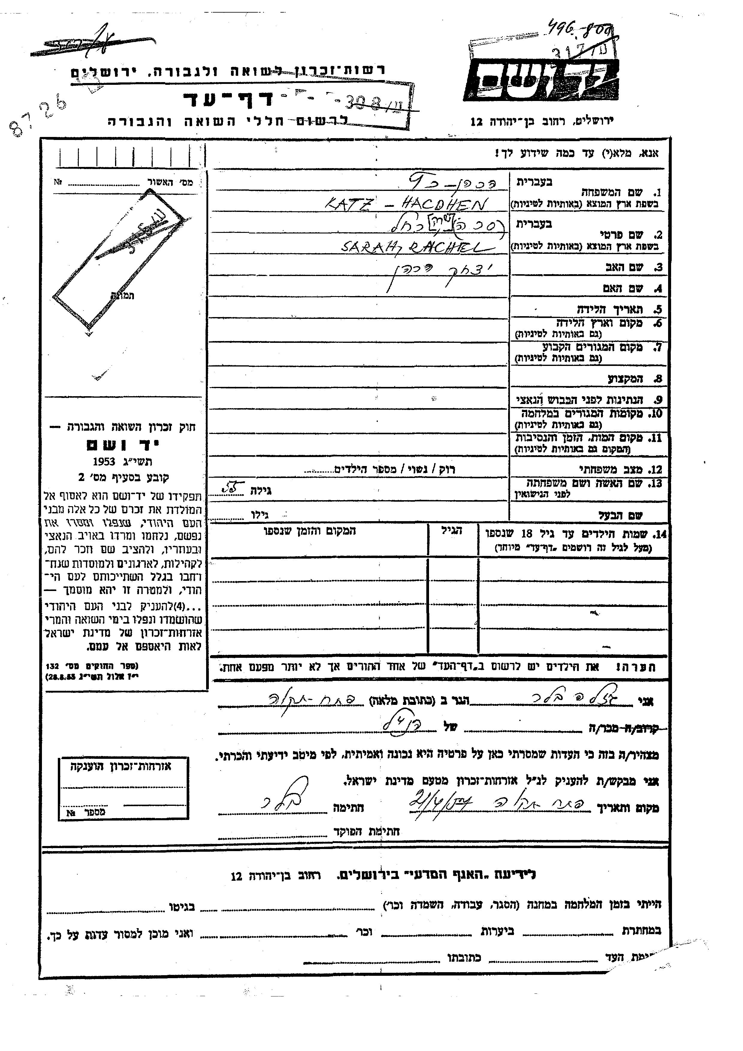Sarah Rachel Hacohen Katz wurde Sie war die Tochter von Yitzkhak.