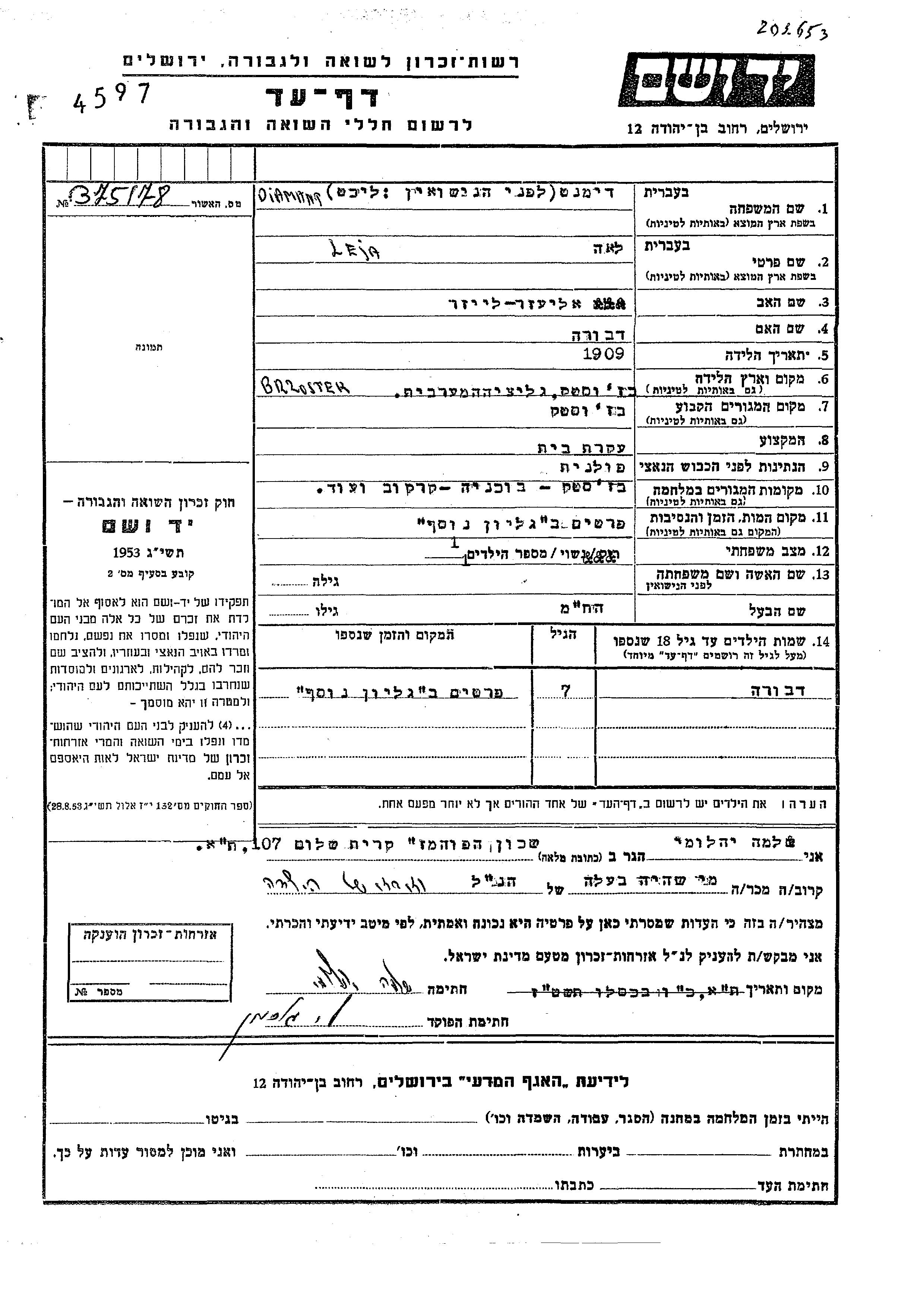 Leia Diamand, geb. Likht wurde im Jahr 1909 in Brzostek, Polen geboren. Sie war die Tochter von Eliezer und Dvora. Sie war Hausfrau und Verheiratet. Vor dem Zweiten Weltkrieg lebte sie in Brzostek, Polen. Während des Krieges war sie in Brzostek, Polen.
