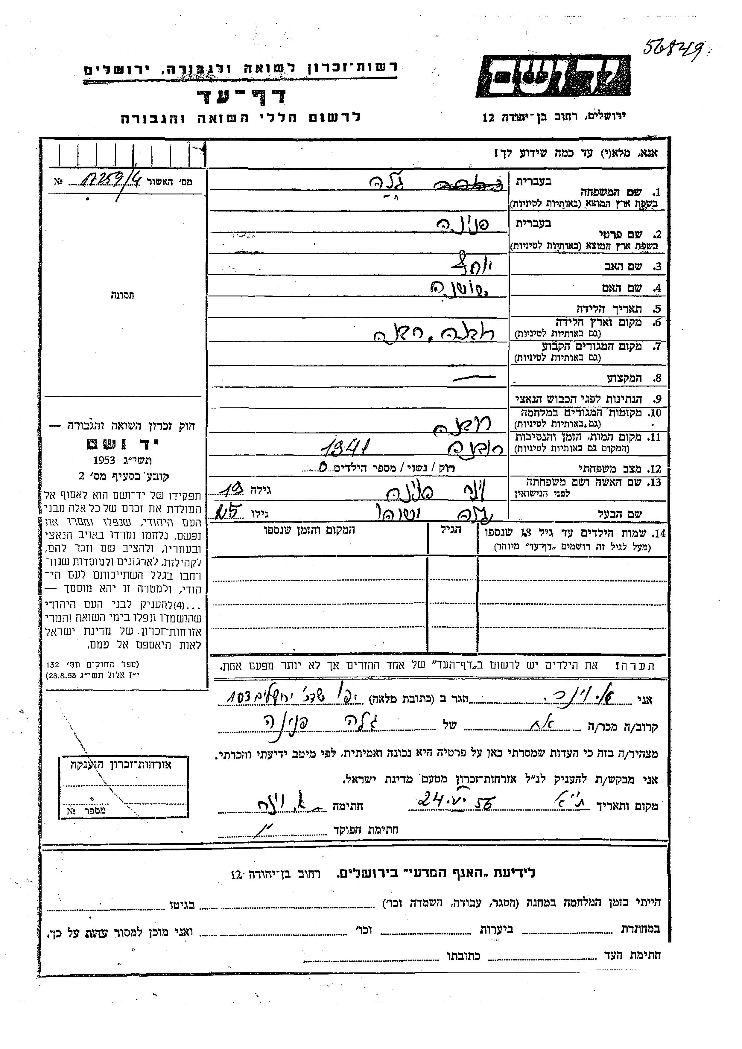 Pnina wurde in der Schoah ermordet. Todesort: Rovna im Jahr 1941.
