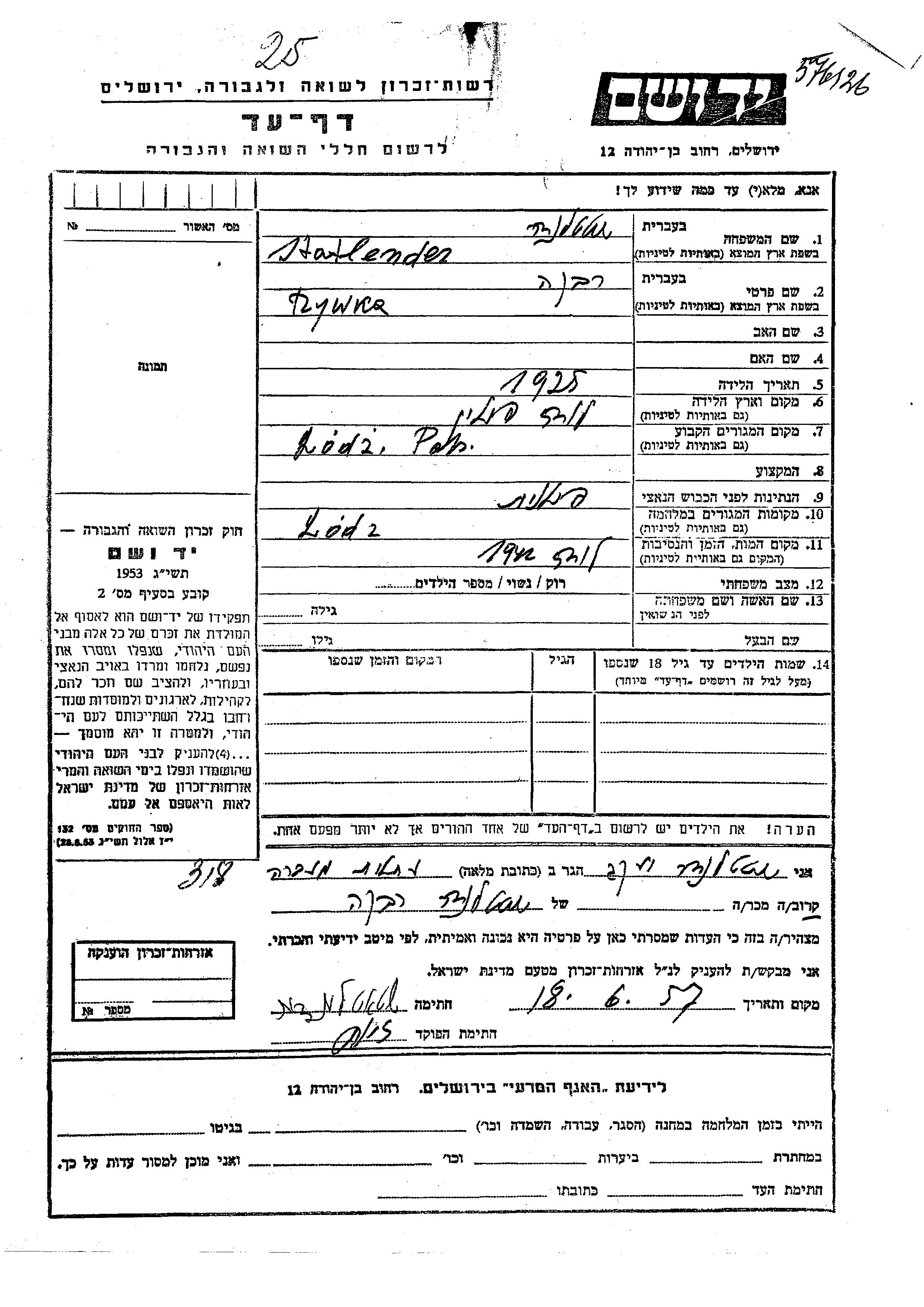 Rywka Statlender wurde im Jahr 1925 in Lodz, Polen geboren. Vor dem Zweiten Weltkrieg lebte sie in Lodz, Polen. Während des Krieges war sie in Lodz, Polen.