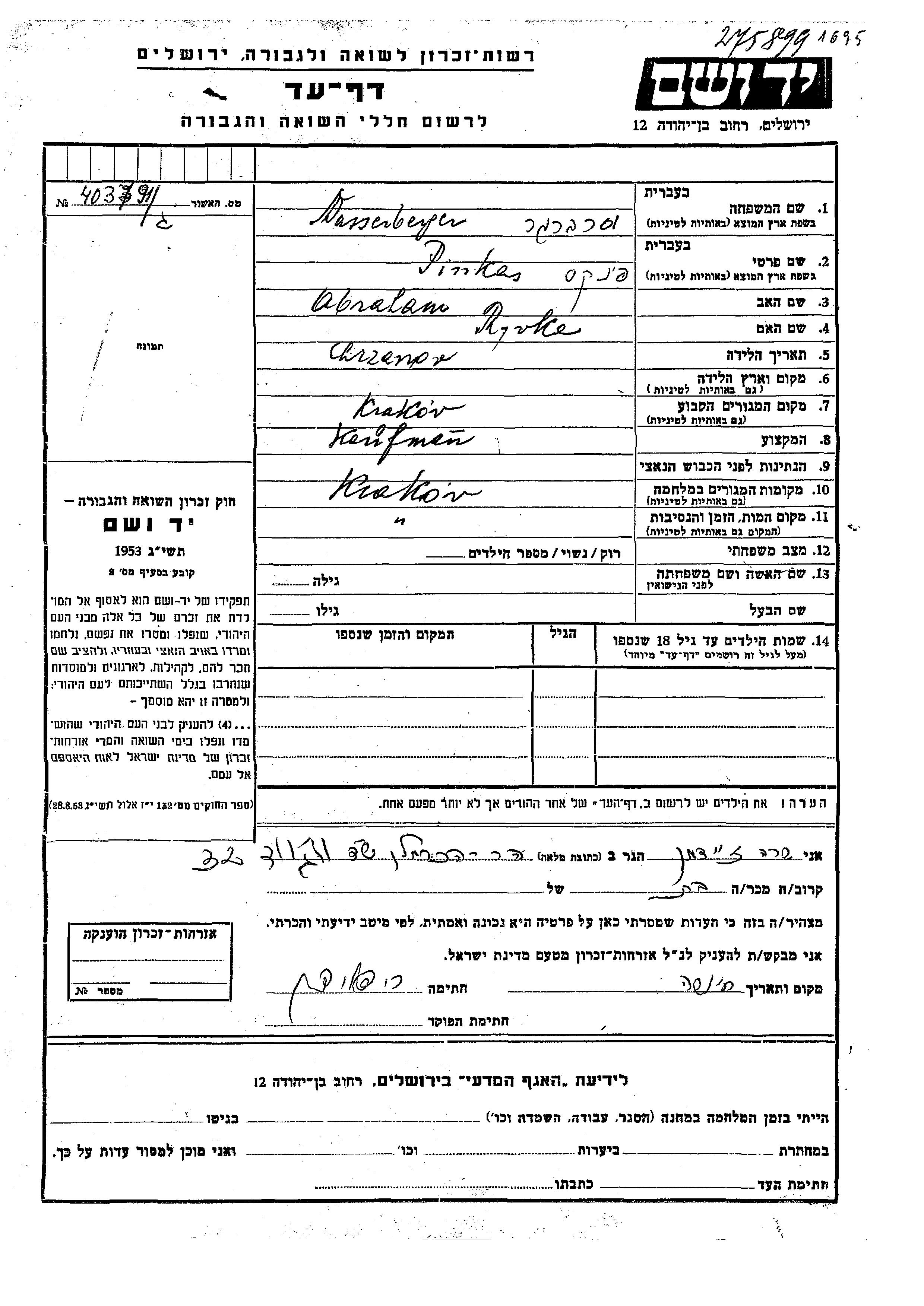Pinkhas wurde in der Schoah ermordet. Todesort: Krakow, Polen.
