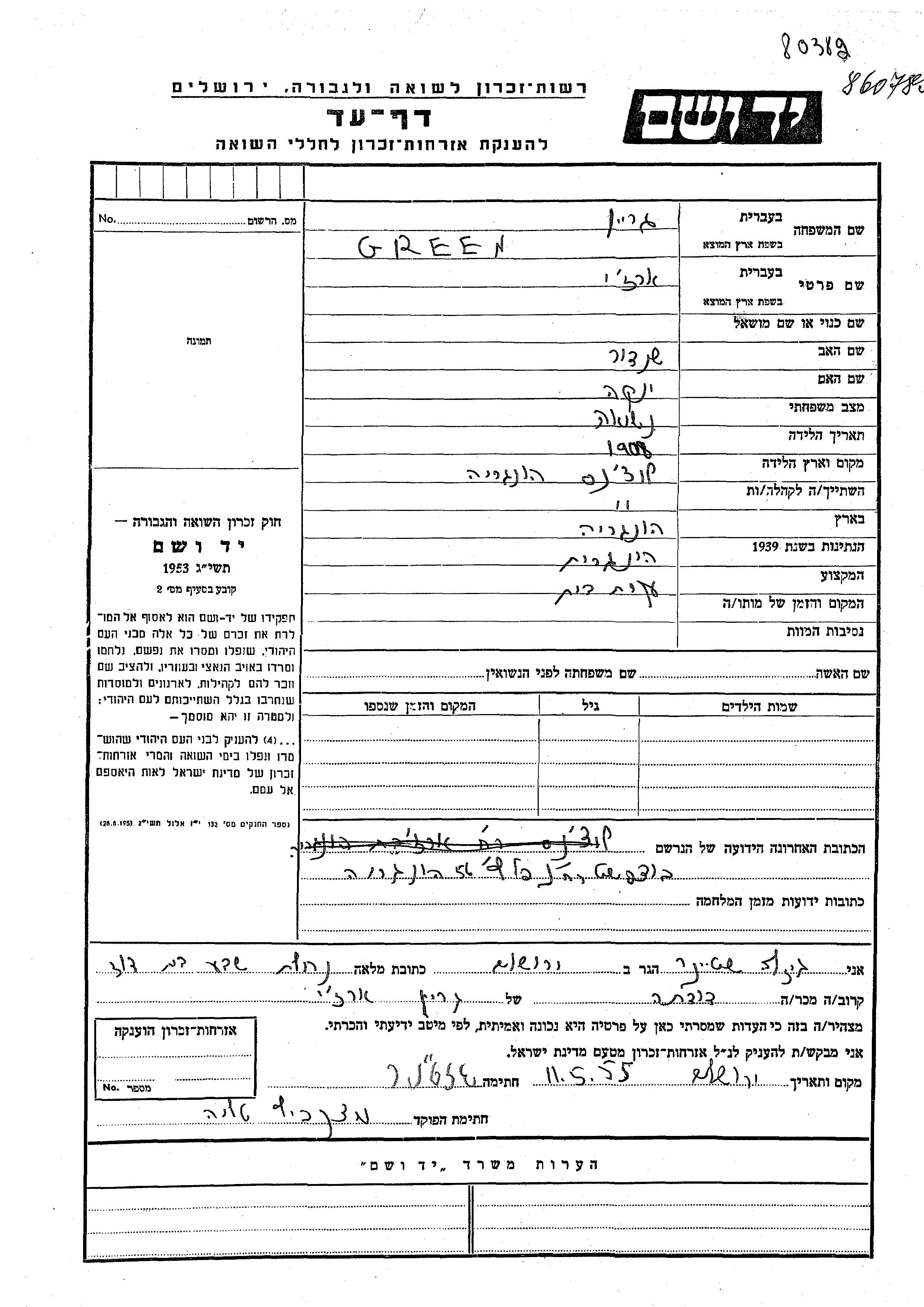 Erzhi Green Grein wurde im Jahr 1908 in Lucenec, Tschechoslowakei geboren. Sie war die Tochter von Sandor und Yanka. Sie war Hausfrau. Vor dem Zweiten Weltkrieg lebte sie in Budapest, Ungarn.