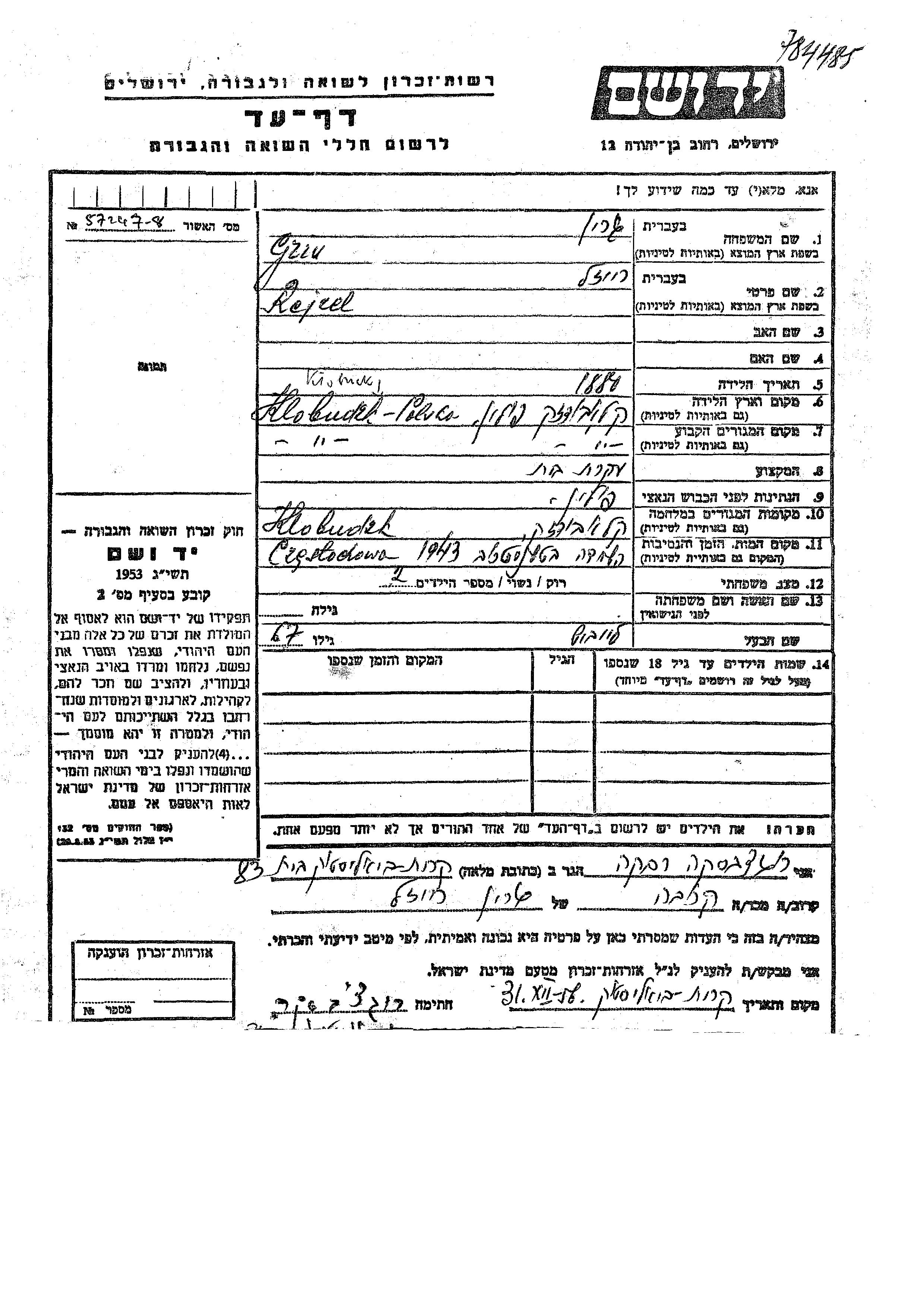 Rejzel wurde in der Schoah ermordet. Todesort: Czestochowa, Polen im Jahr 1943.