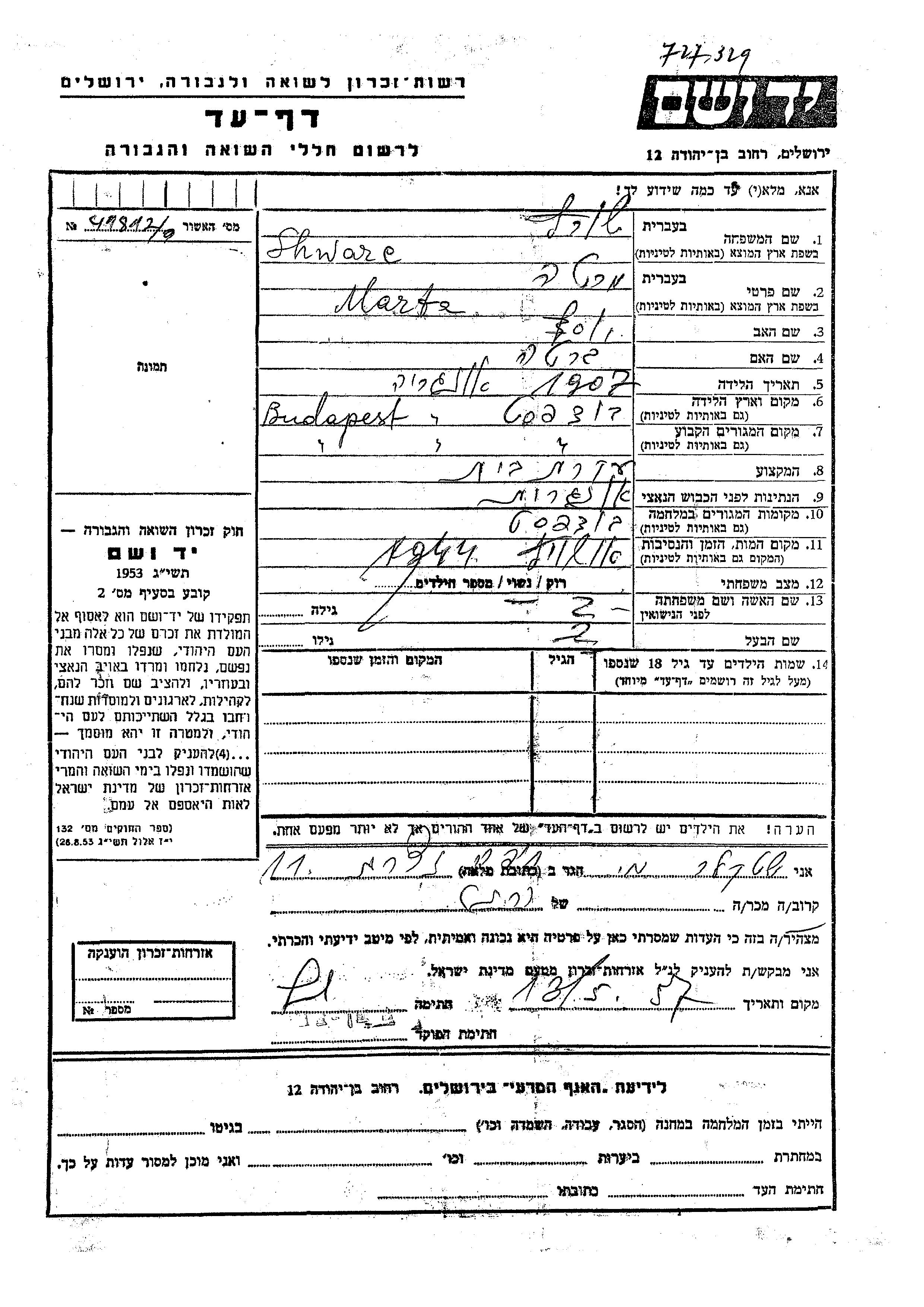 Marta Shwarc wurde im Jahr 1907 in Budapest, Ungarn geboren. Sie war die Tochter von Yosef und Berta. Sie war Hausfrau und Verheiratet. Vor dem Zweiten Weltkrieg lebte sie in Budapest, Ungarn. Während des Krieges war sie in Budapest, Ungarn.