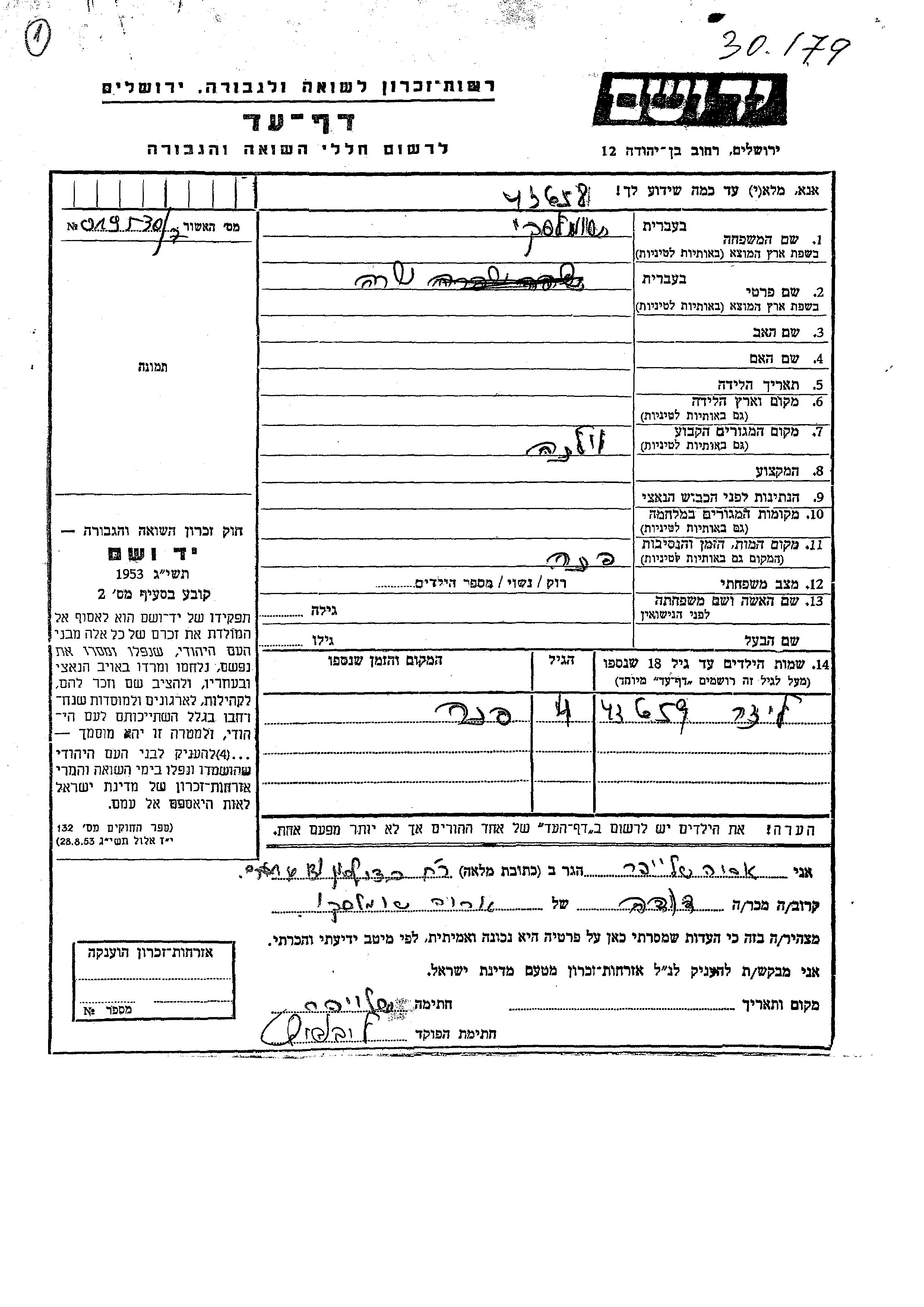 Shumelski Sara Vilna, Polen Gedenkblatt