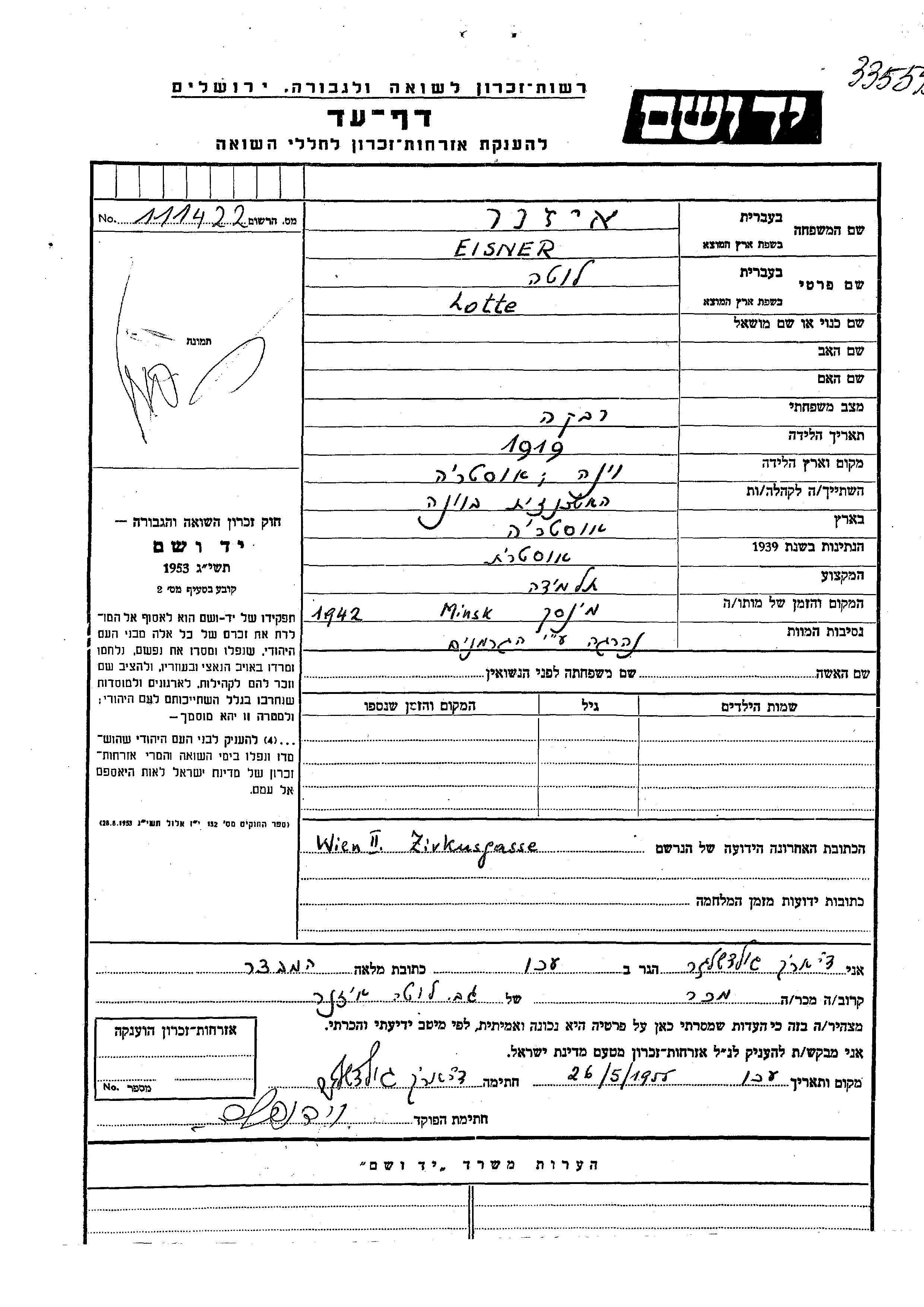 Lotte wurde in der Schoah ermordet. Todesort: Minsk, Weißrussland (UdSSR) im Jahr 1942.