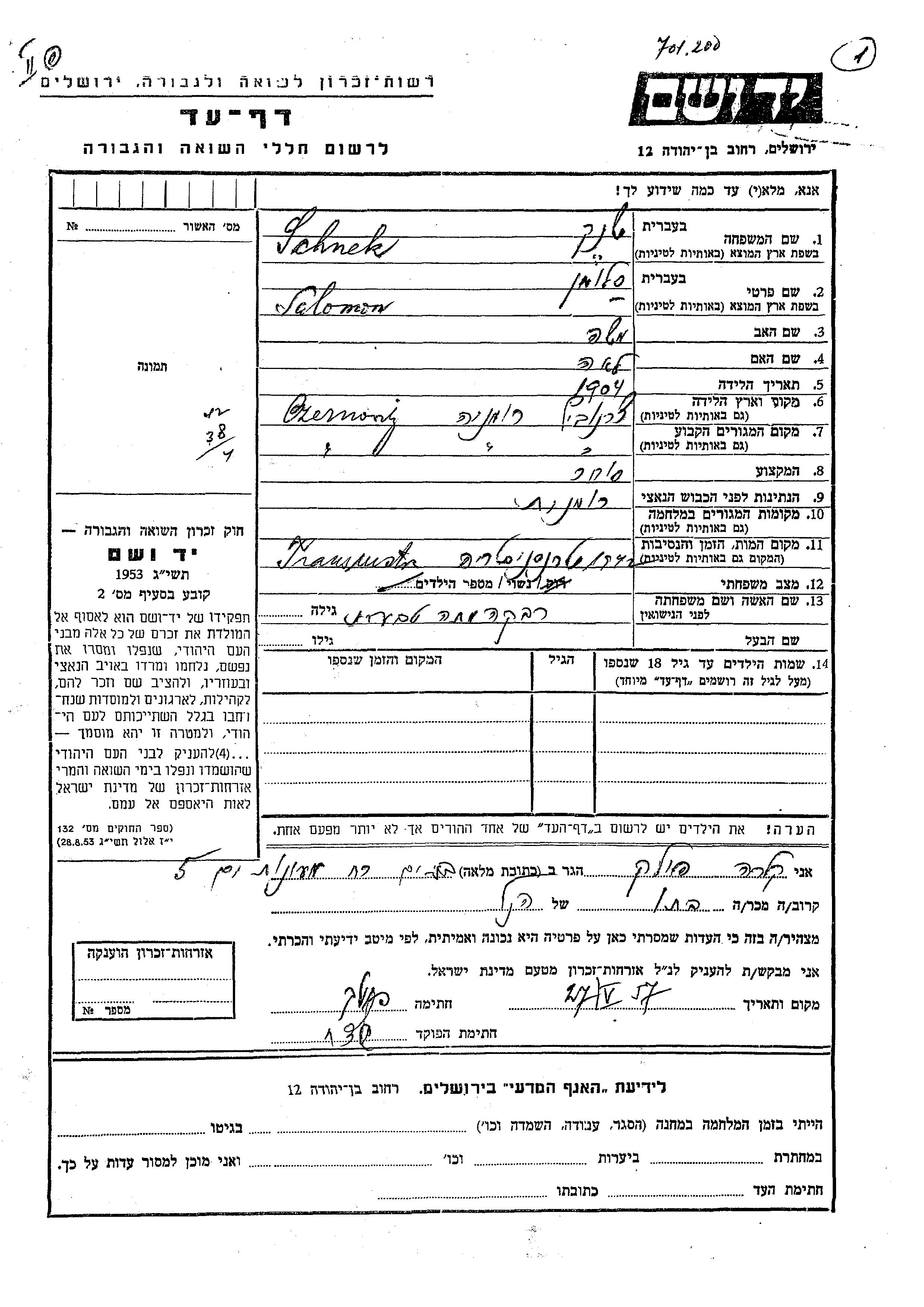 Salomon wurde in der Schoah ermordet. Todesort: Transnistria, Ukraine (UdSSR) im Jahr 1942.