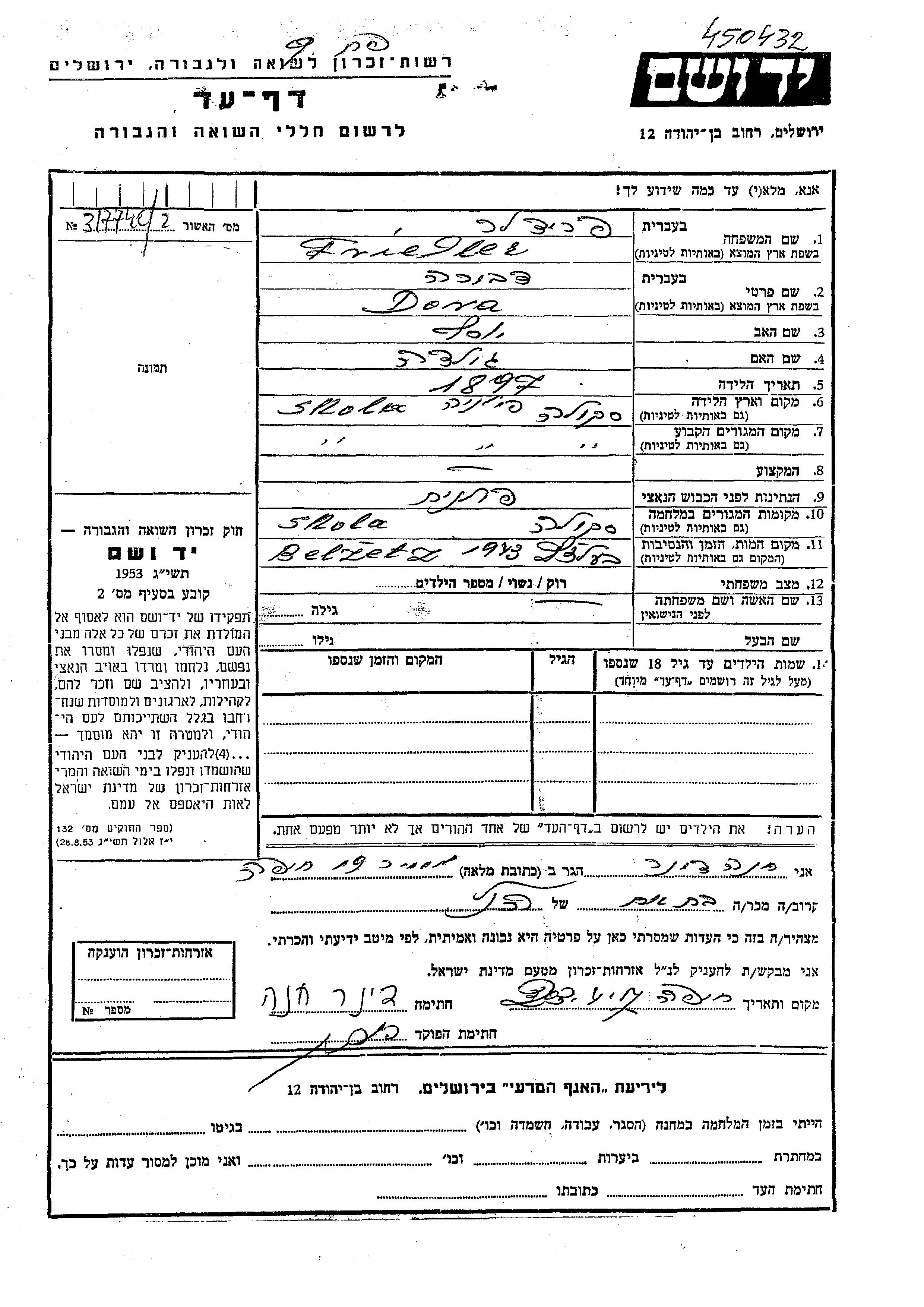 Dora Dvora wurde in der Schoah ermordet. Todesort: Belzec, Polen im Jahr 1943.