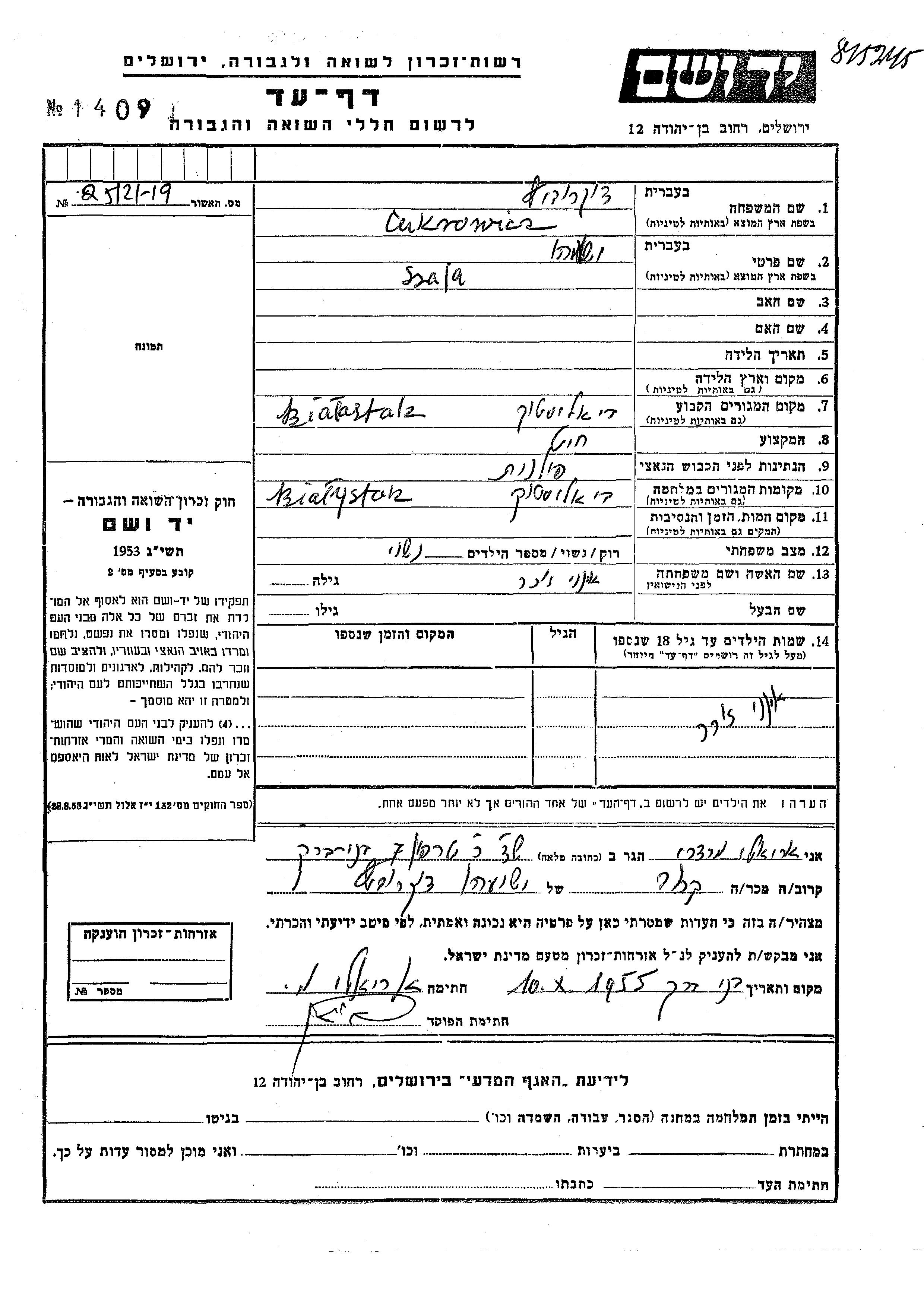 Suche nach einem Todesjahr im Zeitraum der Holocaust: 1933 bis 1945. Bitte wählen Sie 'Exakt' im Auswahlmenü, um nur nach einem einzelnen Jahr zu suchen, alternativ können Sie die flexibleren Optionen '+/- 2 Jahre' oder '+/- 5 Jahre' wählen.