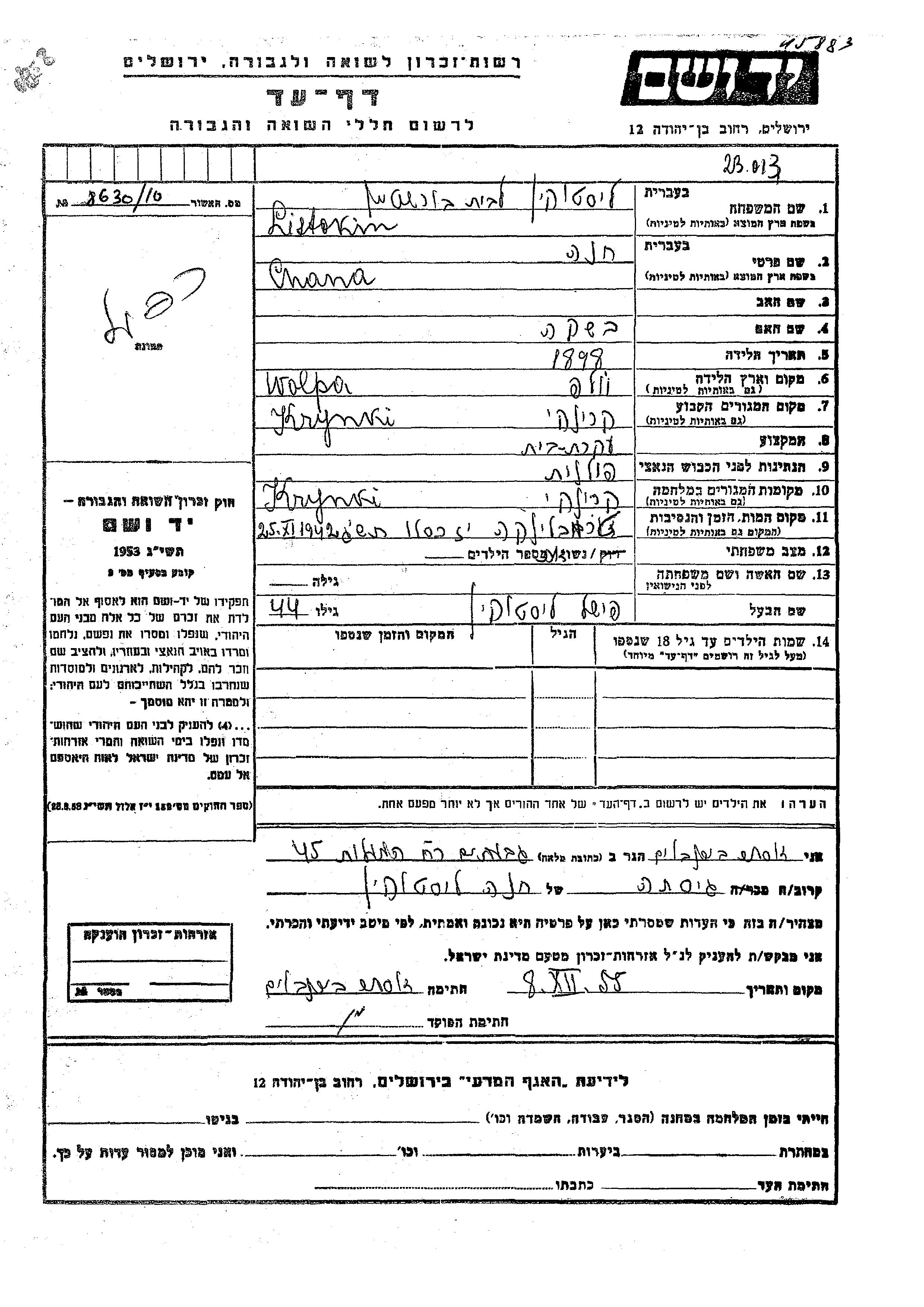 Chana wurde in der Schoah ermordet. Todesort: Treblinka, Polen im Jahr 25/11/1942.