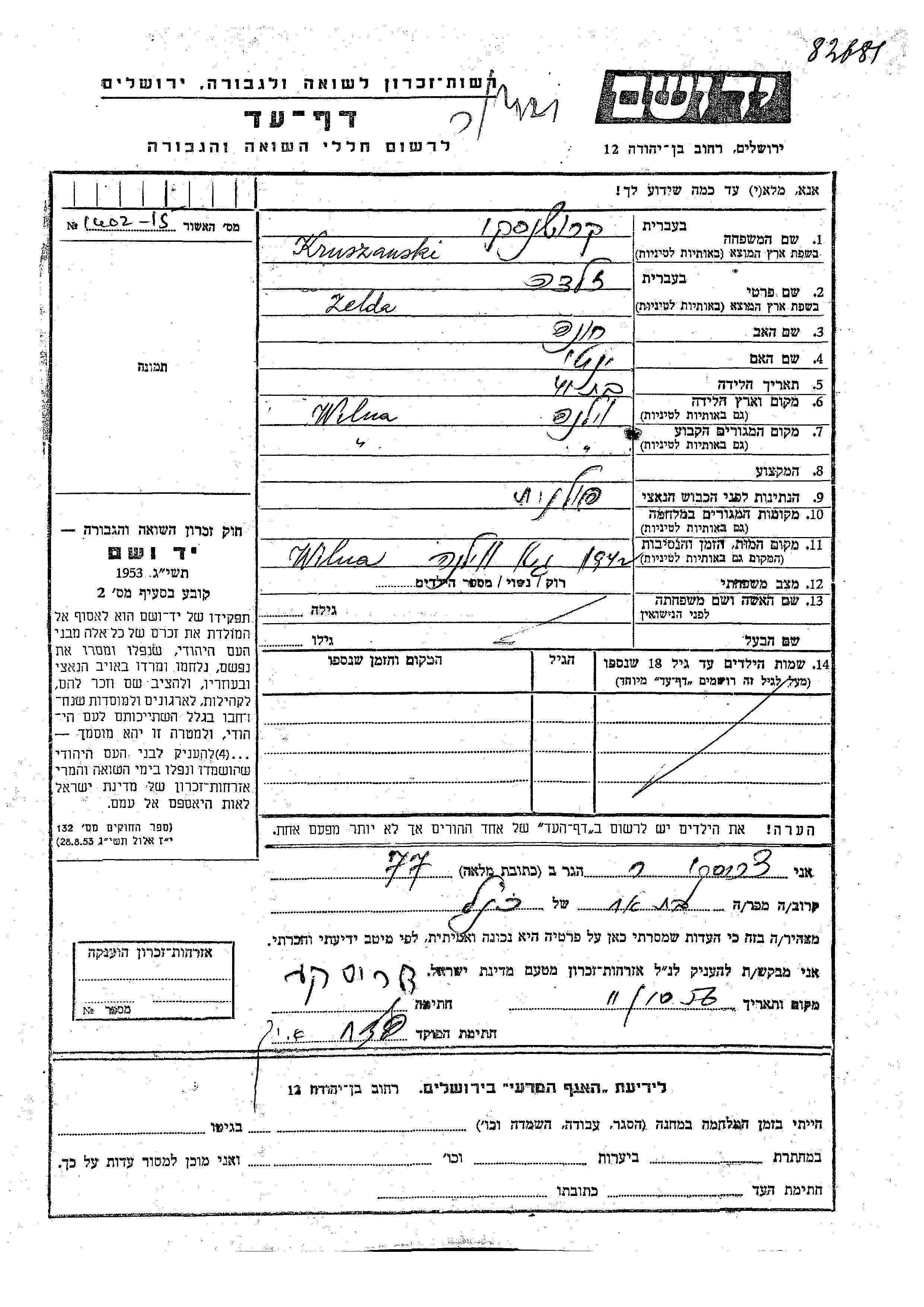 Kruszanski Zelda Wilna, Polen Gedenkblatt