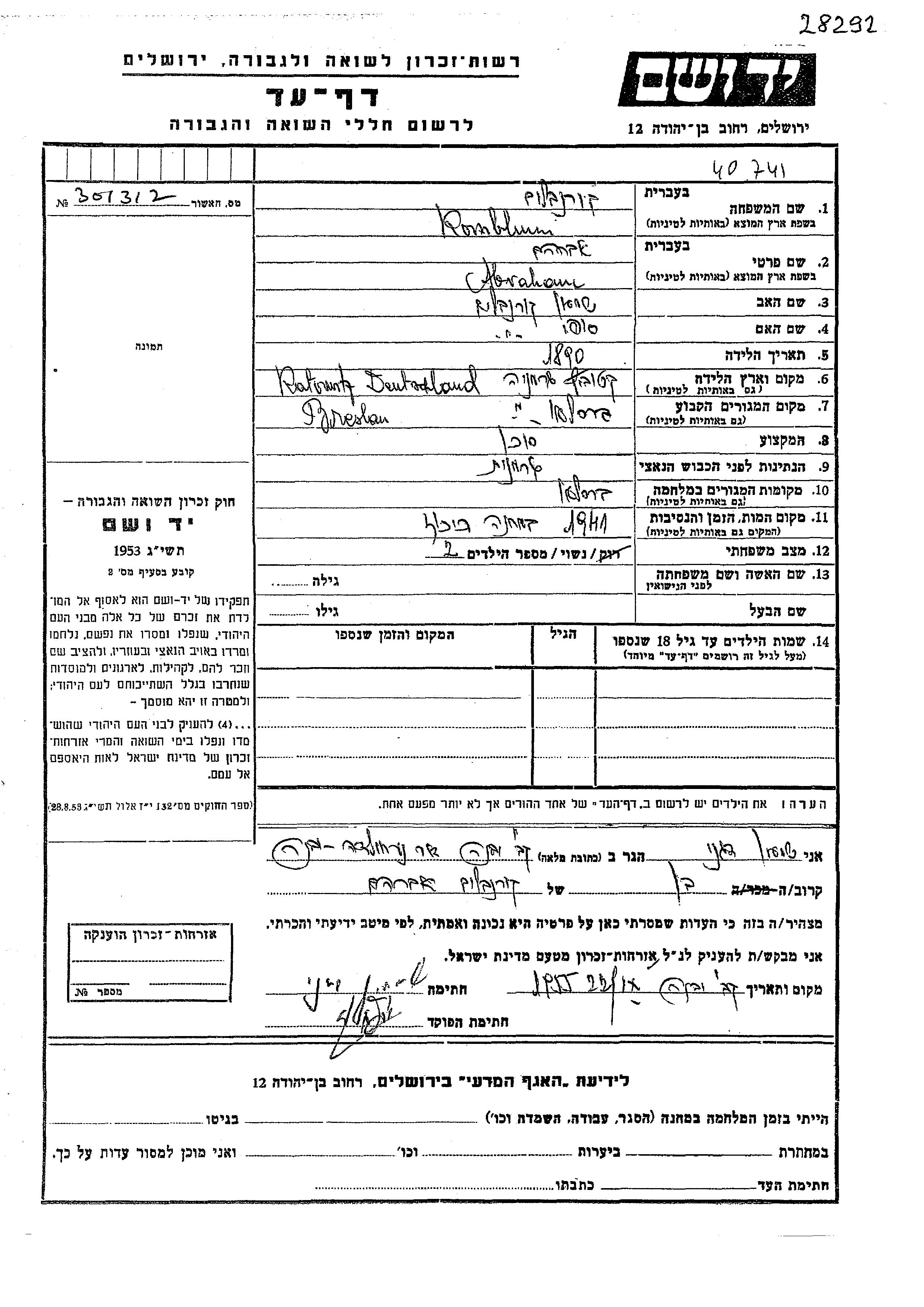 Abraham Kornblum wurde im Jahr 1890 in Katowitz, Polen geboren. Er war der Sohn von Shimon und Sofia. Er war Vertreter/-in und Verheiratet. Vor dem Zweiten Weltkrieg lebte er in Breslau, Deutsches Reich. Während des Krieges war er in Breslau, Deutsches Reich.