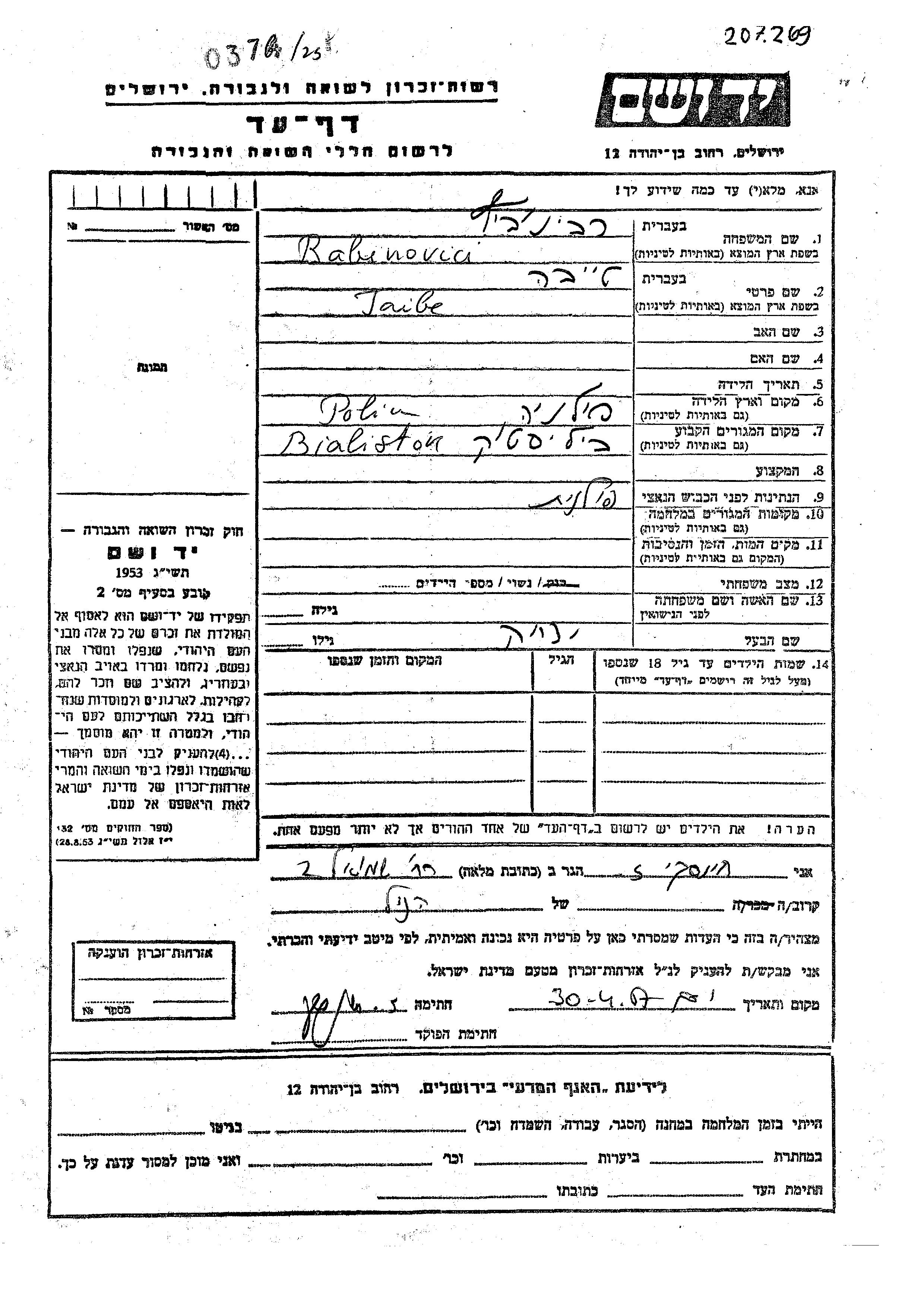 Rabinovicz Taibe Bialistok, Polen Gedenkblatt