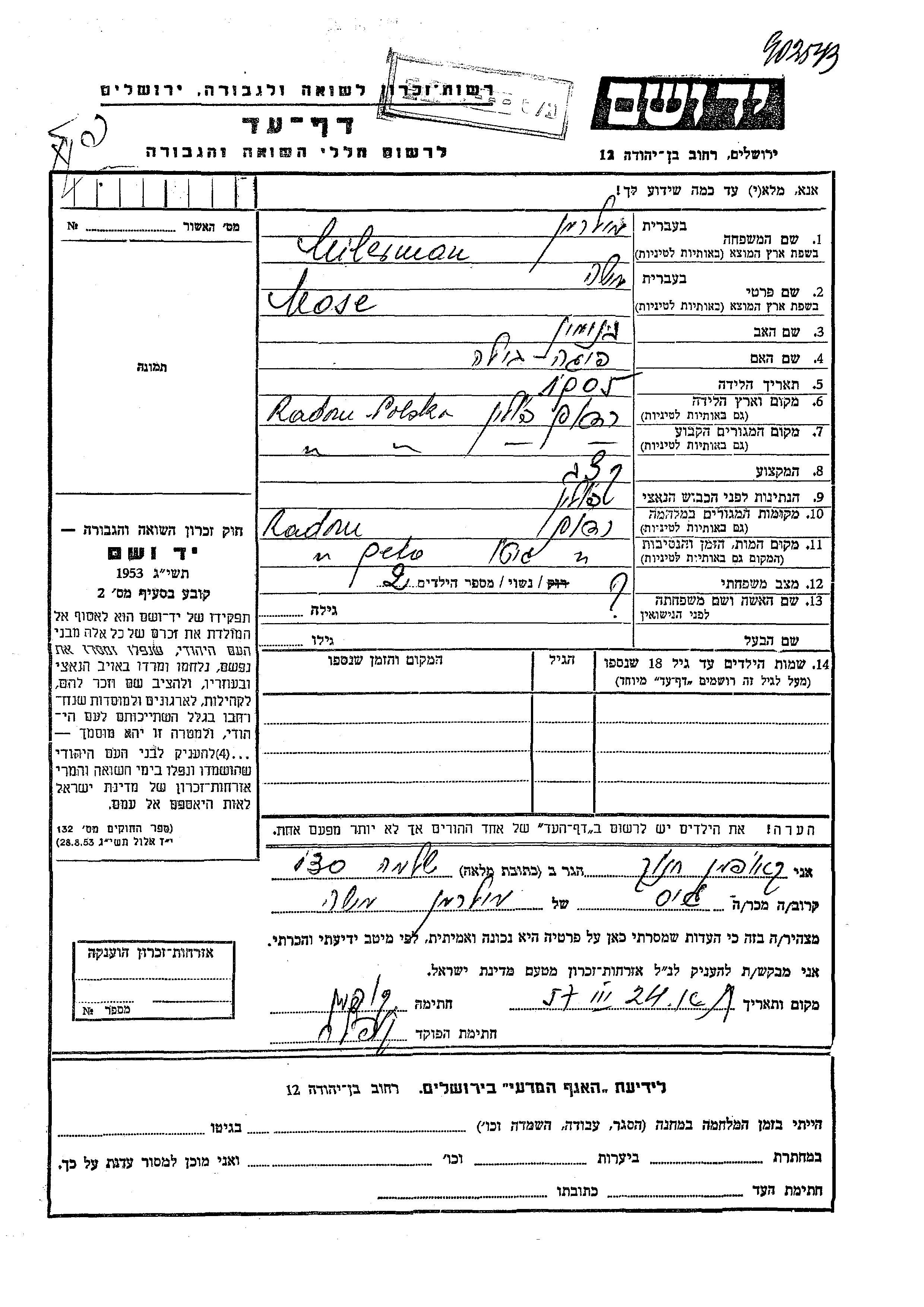 Mose Milerman wurde im Jahr 1905 in Radom, Polen geboren. Er war der Sohn von Beniamin und Feiga Bila. Er war Metzger/-in und Verheiratet. Vor dem Zweiten Weltkrieg lebte er in Radom, Polen. Während des Krieges war er in Radom, Polen.