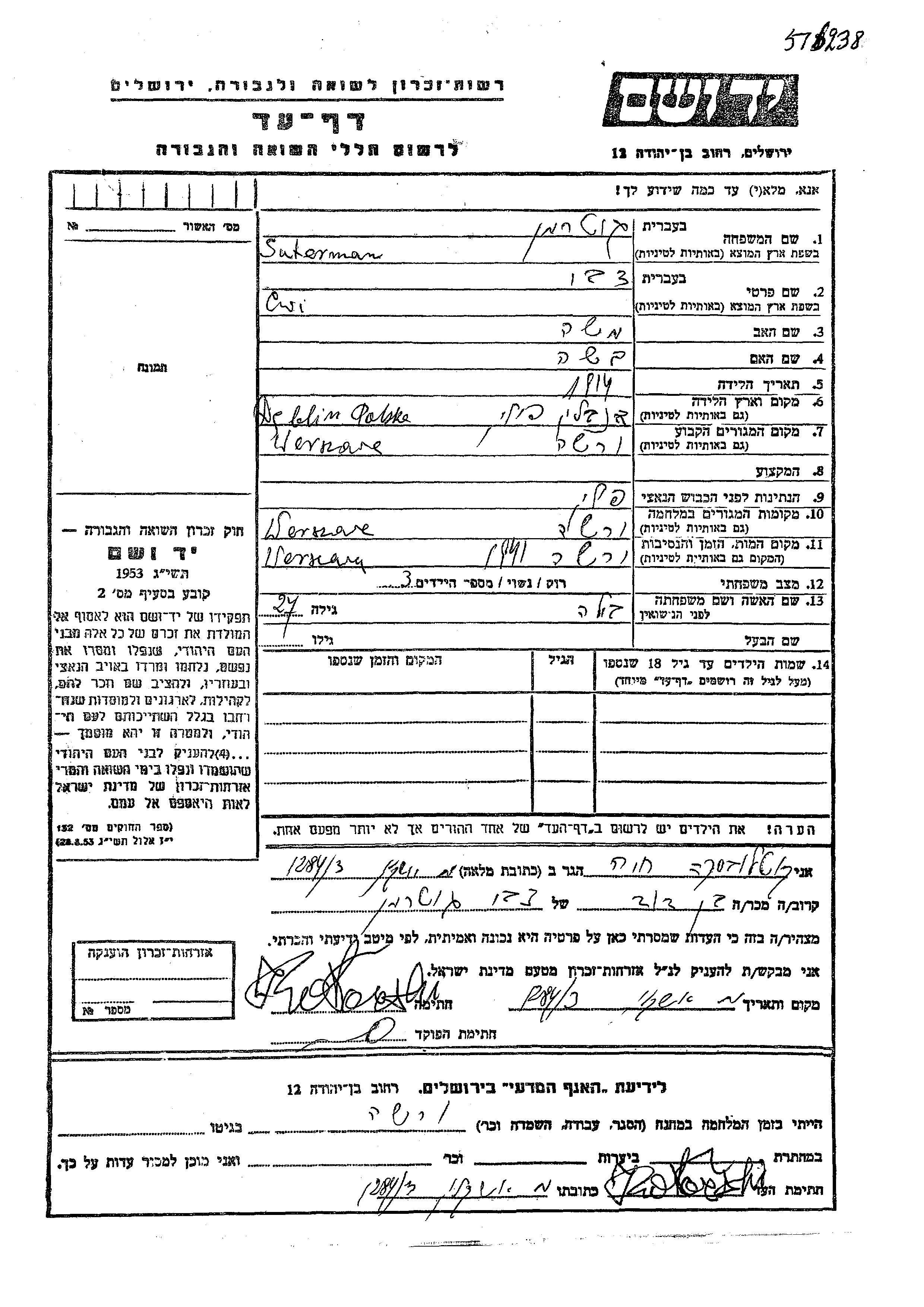 Cvi Guterman wurde im Jahr 1914 in Demblin, Polen geboren. Er war der Sohn von Moshe und Basha. Er war mit Bila Verheiratet. Vor dem Zweiten Weltkrieg lebte er in Warsaw, Polen. Während des Krieges war er in Warsaw, Polen.