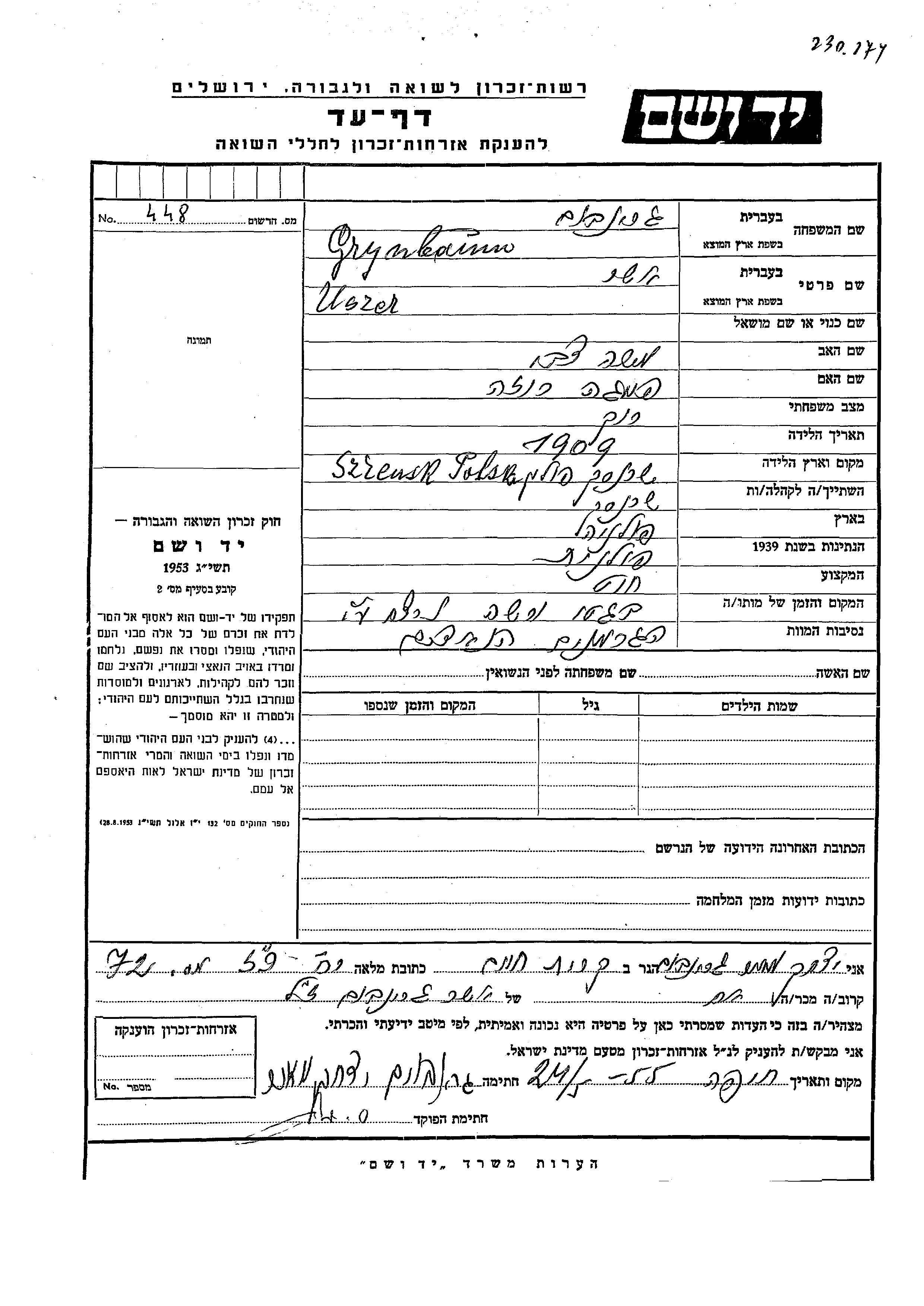 Uszer wurde in der Schoah ermordet. Todesort: Warszawa, Polen.