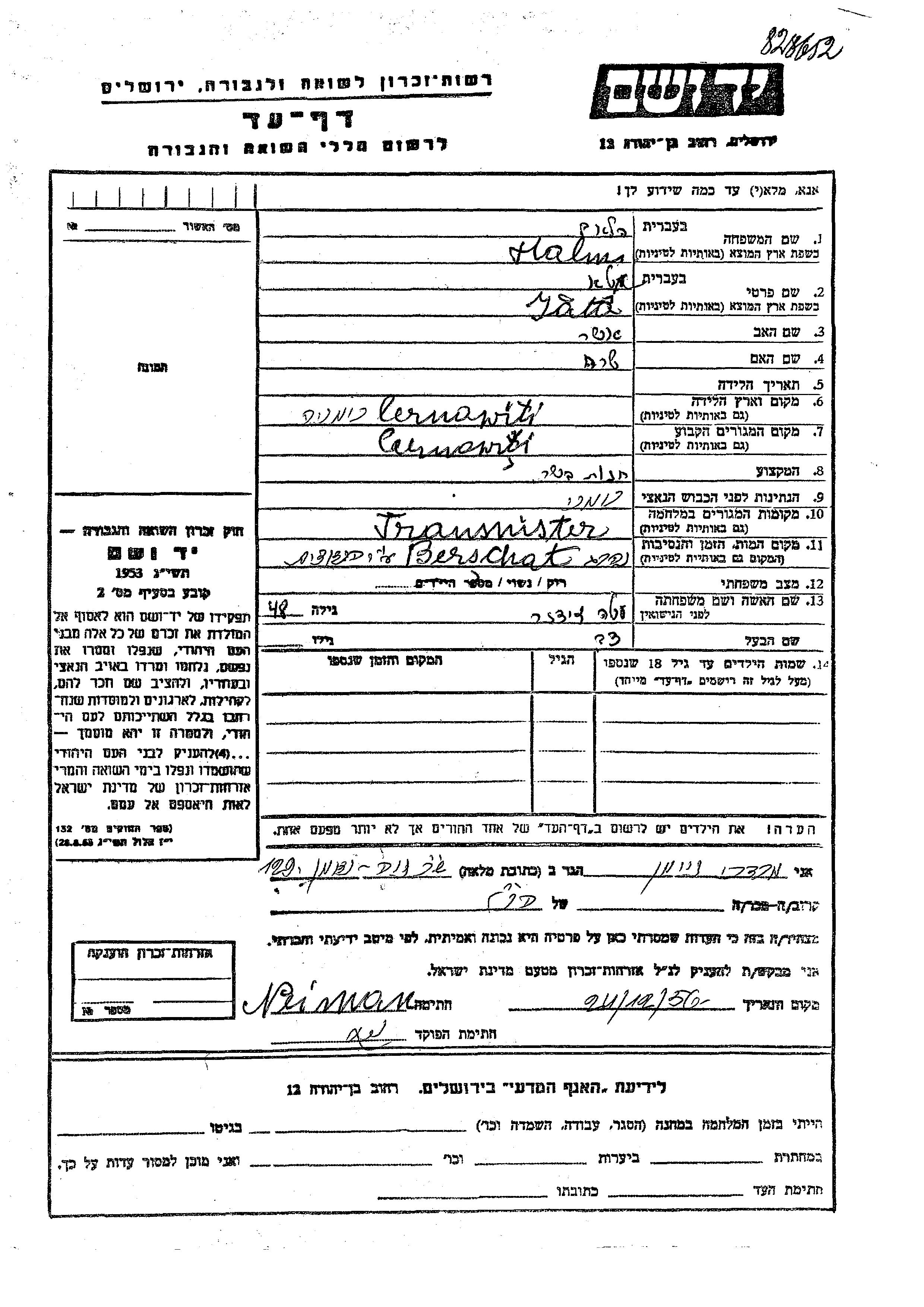Yatte wurde in der Schoah ermordet. Todesort: Bersat, Ukraine (UdSSR).